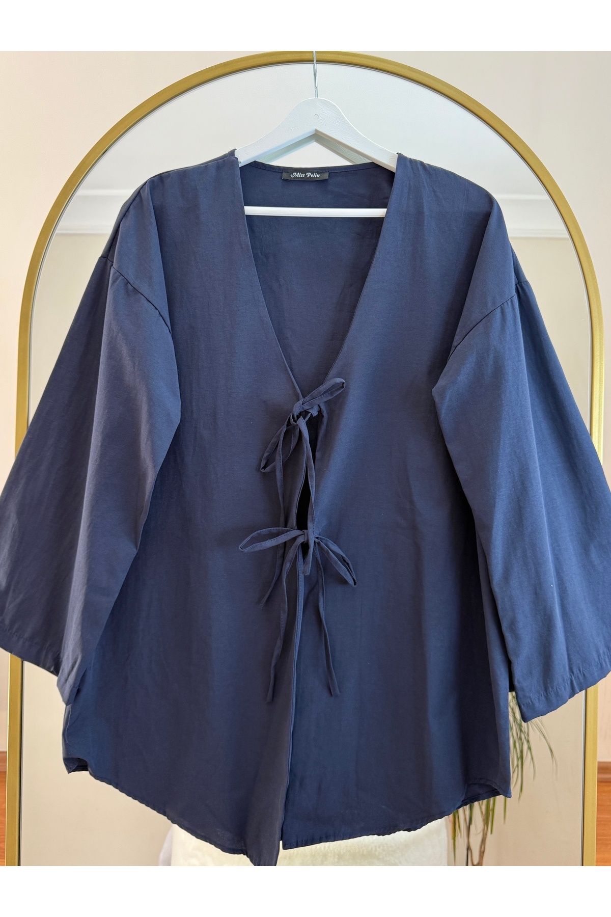 Kadın Önü Bağlamalı Kimono Poplin Tunik Gömlek Tesettür Lacivert Kimono Gömlek Kadın Önü Bağlamalı Kimono Poplin Tunik Gömlek Tesettür Lacivert Kimono Gömlek Emr060 Standart