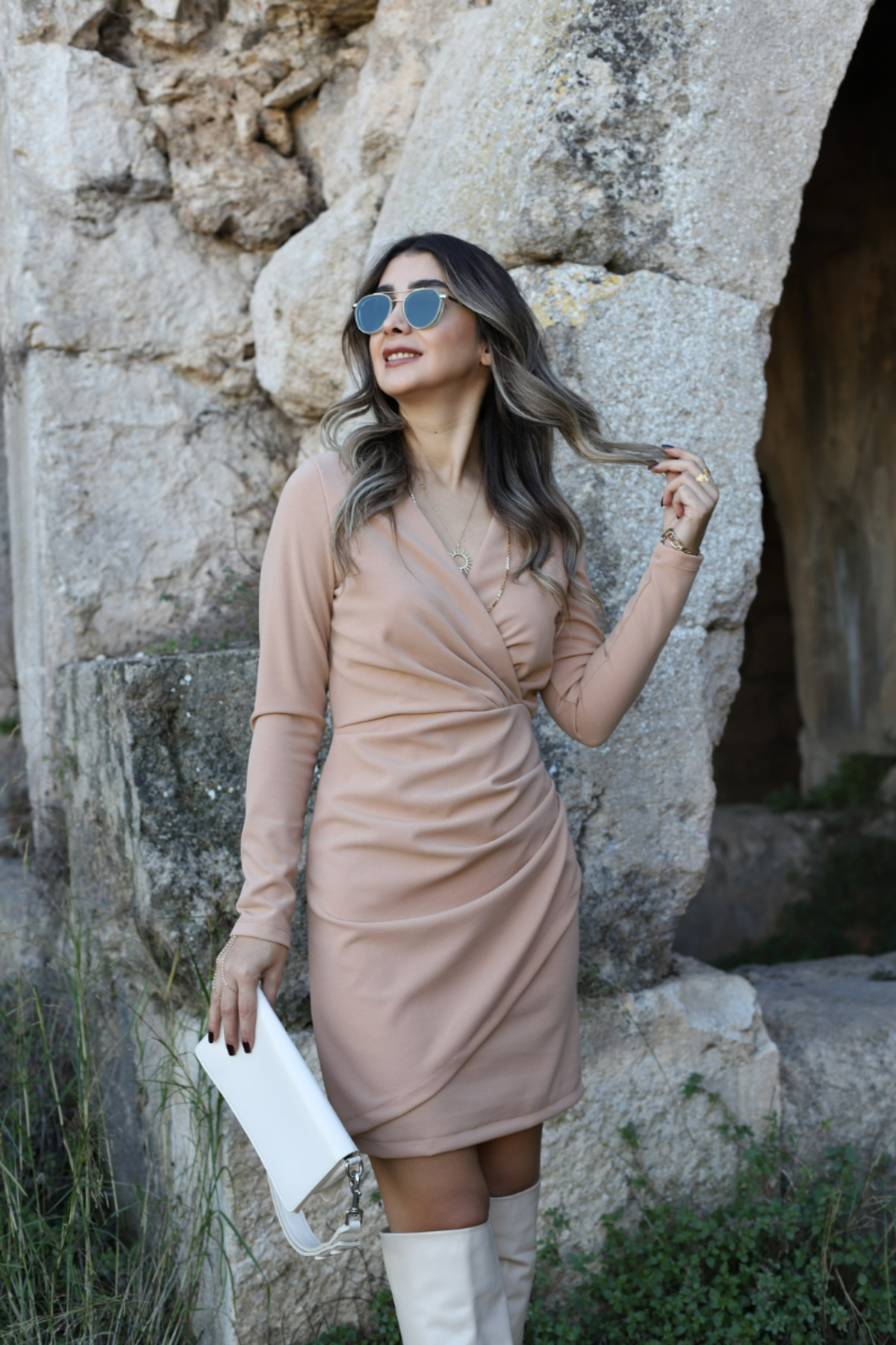 Camel Kruvaze Etek Detay Elbise Camel Kruvaze Etek Detay Elbise P859S4330 XL