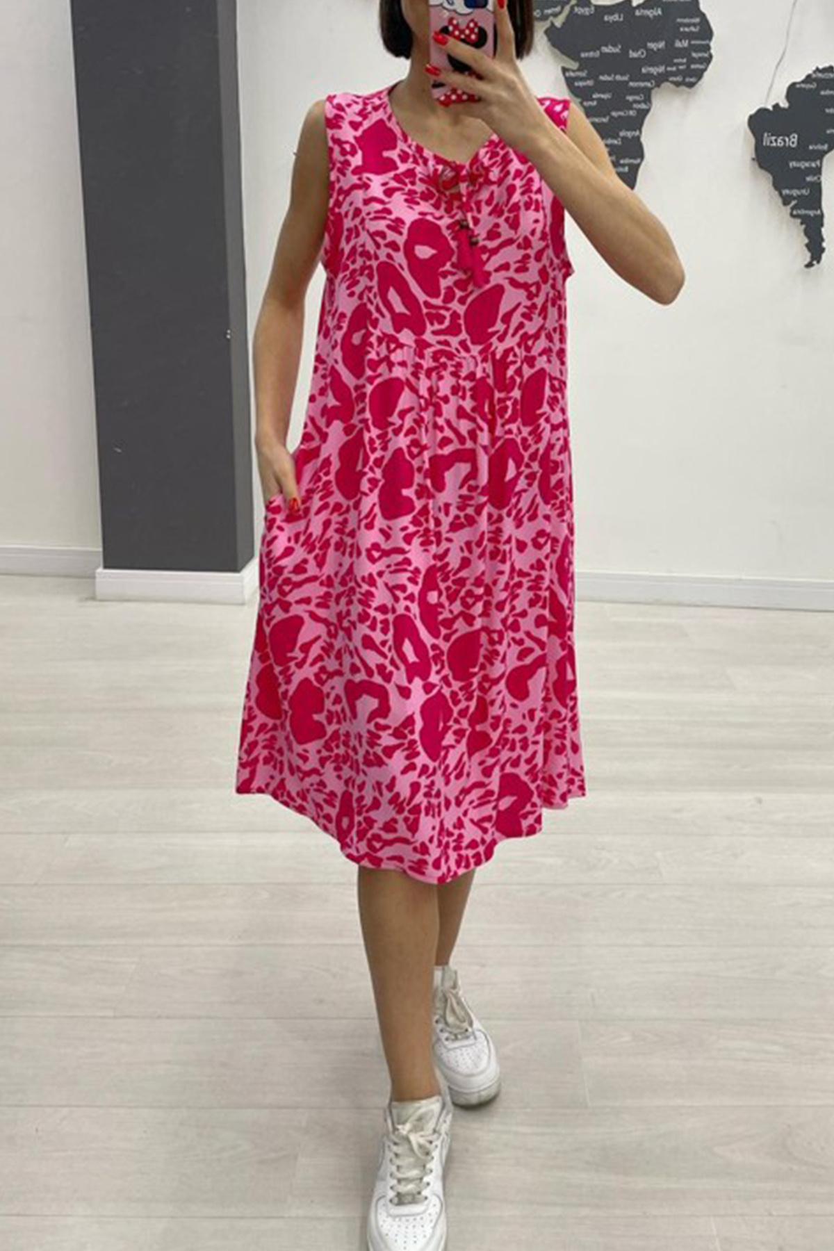 Kadın Yeşil V Yakalı Desenli Yandan Cepli Salaş Rahat Kesim Kolsuz Midi Elbise Kadın Yeşil V Yakalı Desenli Yandan Cepli Salaş Rahat Kesim Kolsuz Midi Elbise V051-VW XL/2XL