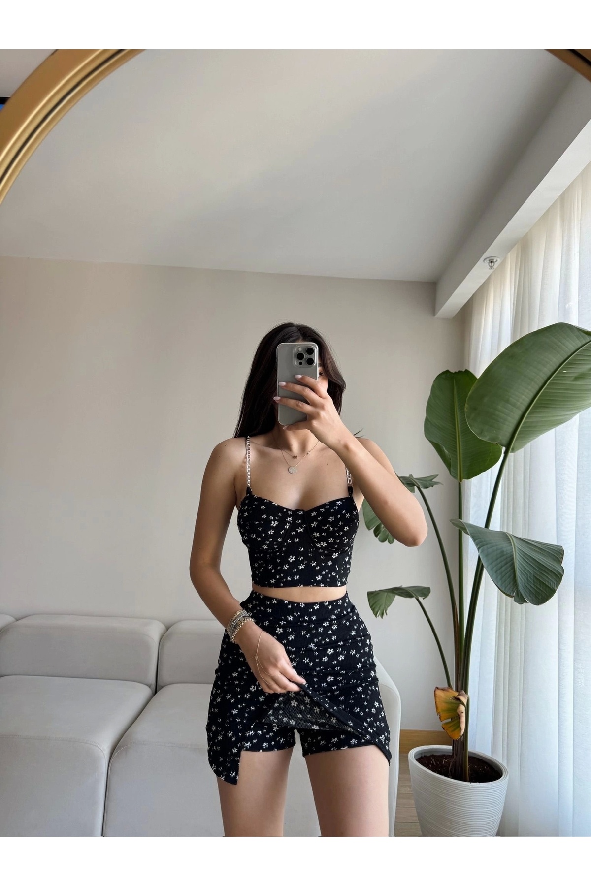 Zincir Askılı Şortlu Etek Takım - SİYAH Zincir Askılı Şortlu Etek Takım - SİYAH P16990S5721 L