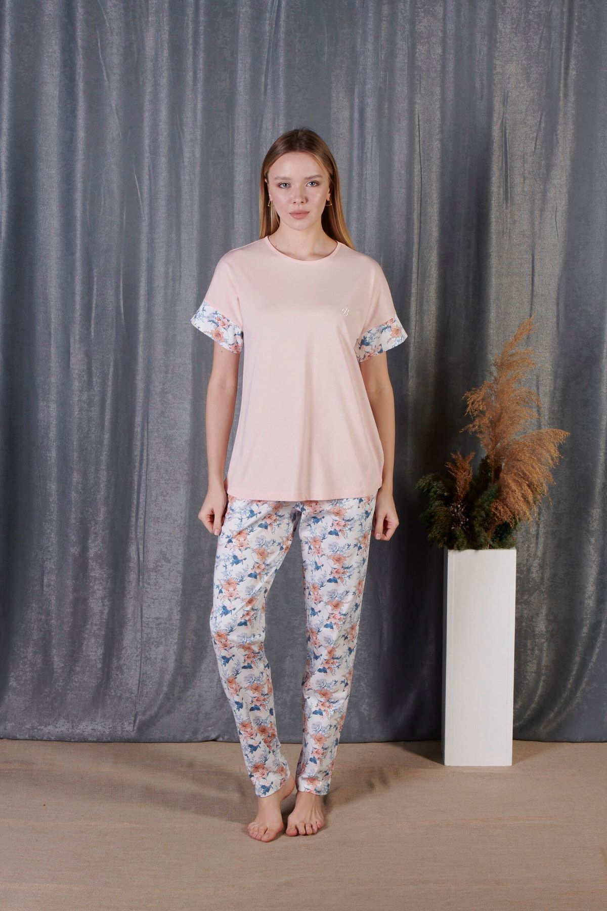 Kadın %100 Organik Pamuk Mint Çiçek Desenli Kısa Kollu Doğal Pijama Takımı Kadın %100 Organik Pamuk Mint Çiçek Desenli Kısa Kollu Doğal Pijama Takımı P2524Y002552 2XL