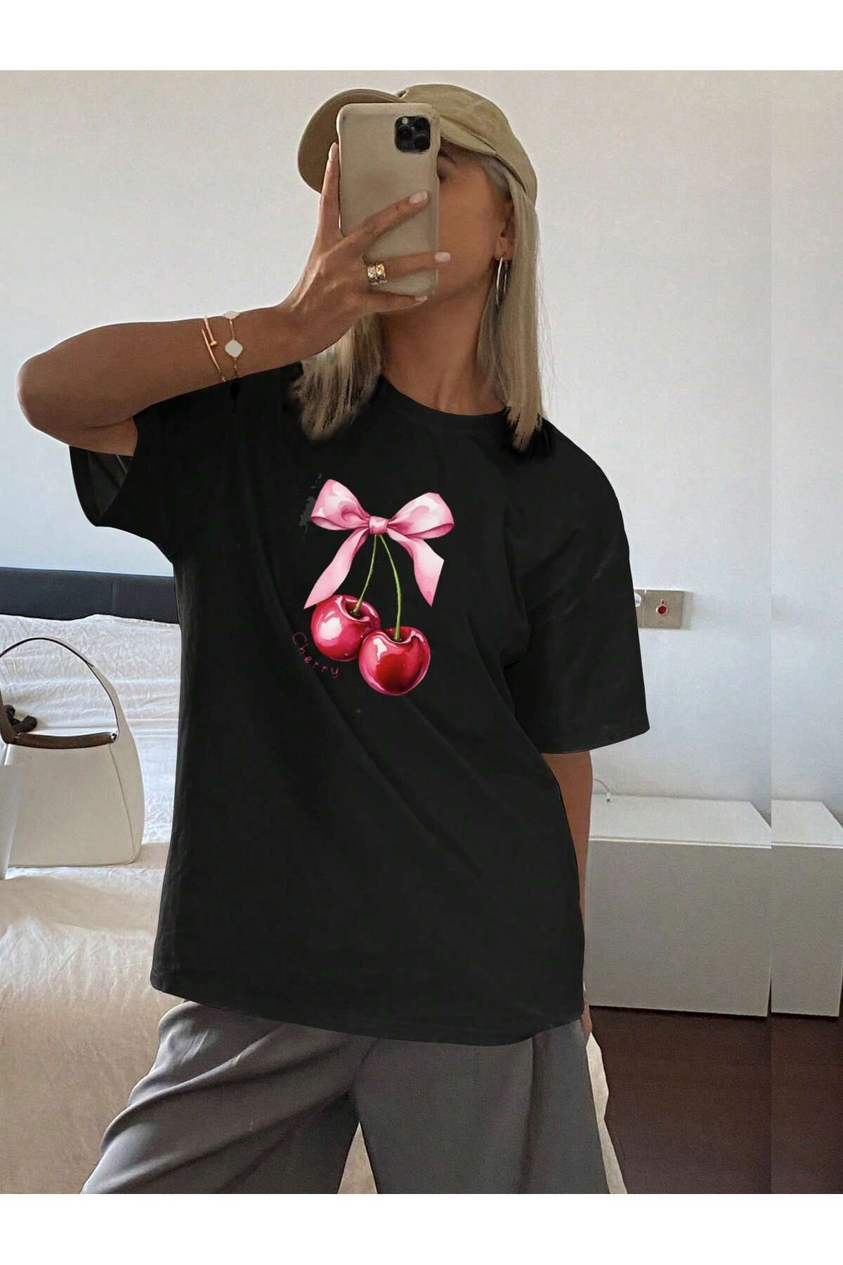 KADIN Cherry Baskılı Bisiklet Yaka Tişört KADIN Cherry Baskılı Bisiklet Yaka Tişört DAXIS-BT019 4XL