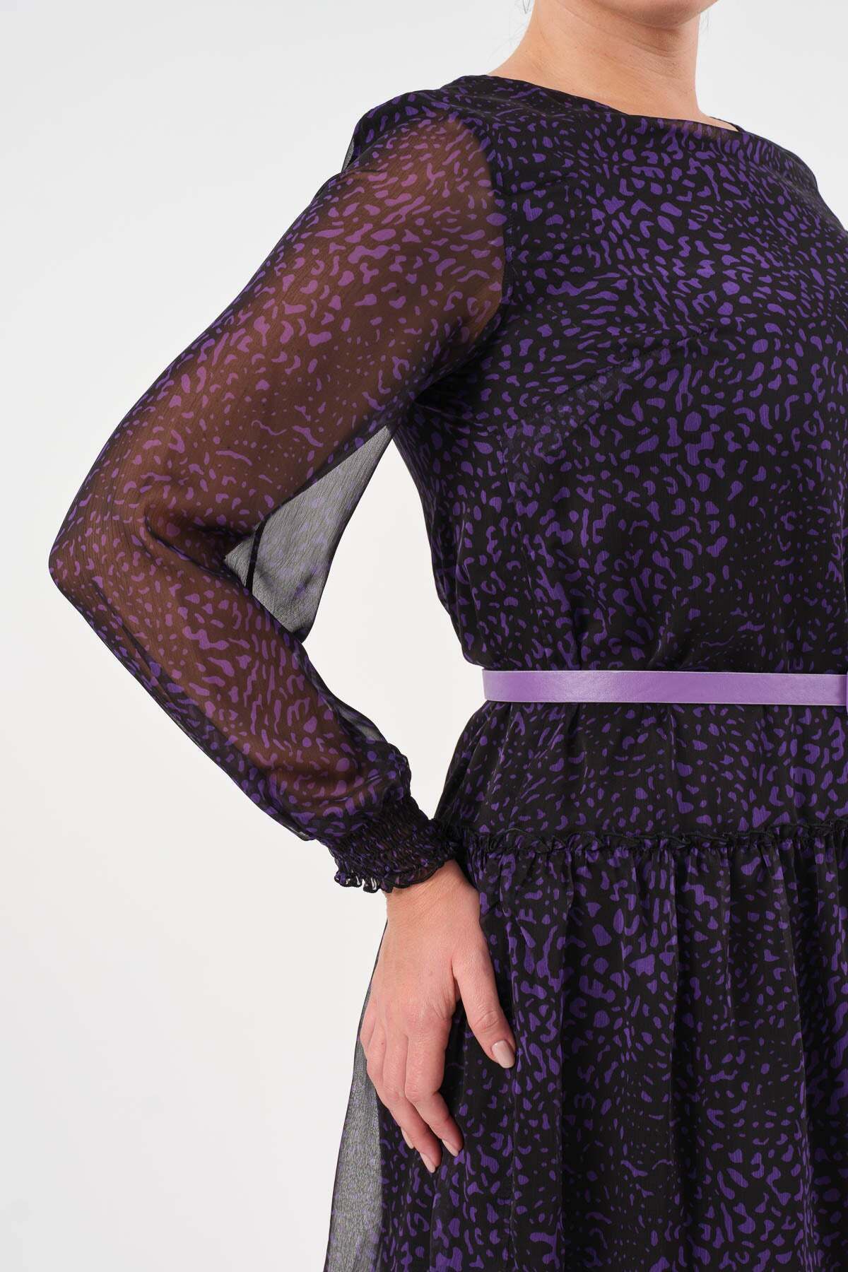 Katlı Karışık Puanlı Kemerli Uzun Elbise - Mor Katlı Karışık Puanlı Kemerli Uzun Elbise - Mor 19284 48