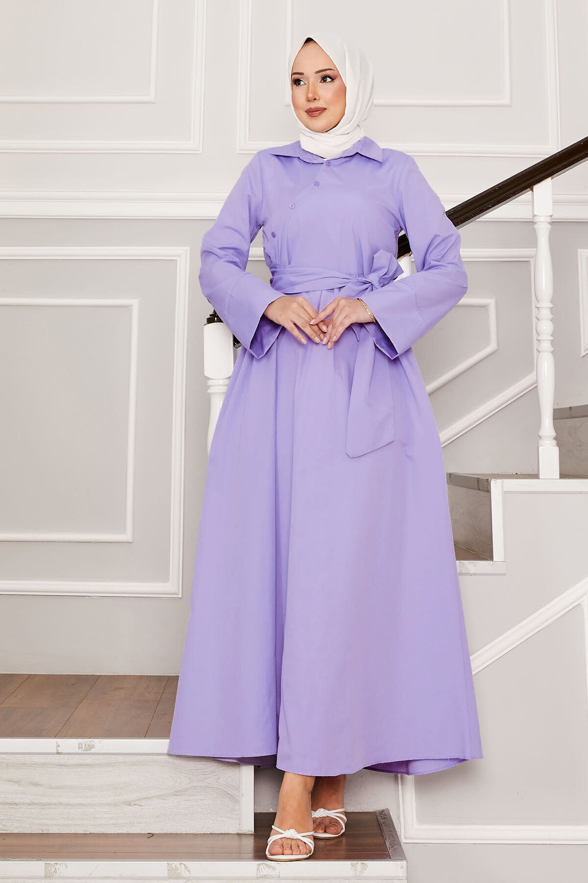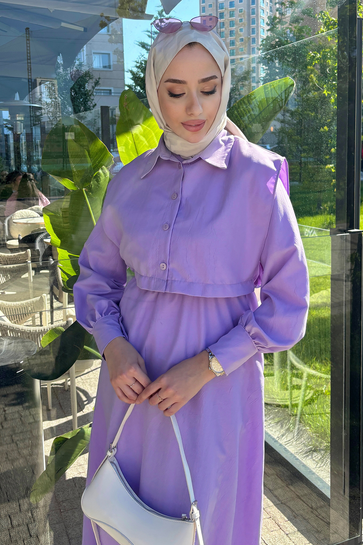 Kadın Tesettür Giyim Elbise Bolerolu-Lila Kadın Tesettür Giyim Elbise Bolerolu-Lila AYN041 XL