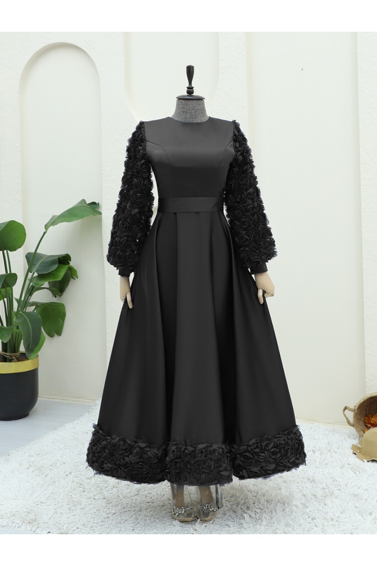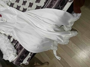 Eteği Ve Kolları Gül Detaylı Saten Abiye -Beyaz Eteği Ve Kolları Gül Detaylı Saten Abiye -Beyaz TY316-4661 44