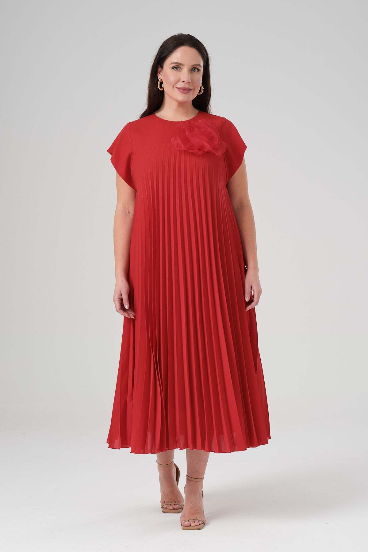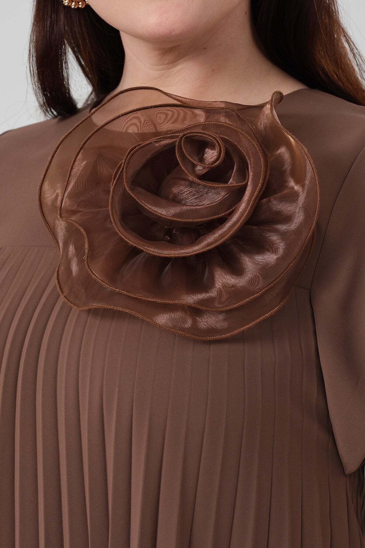 Yakası Güllü Piliseli Elbise - Kahve Yakası Güllü Piliseli Elbise - Kahve 1142 52