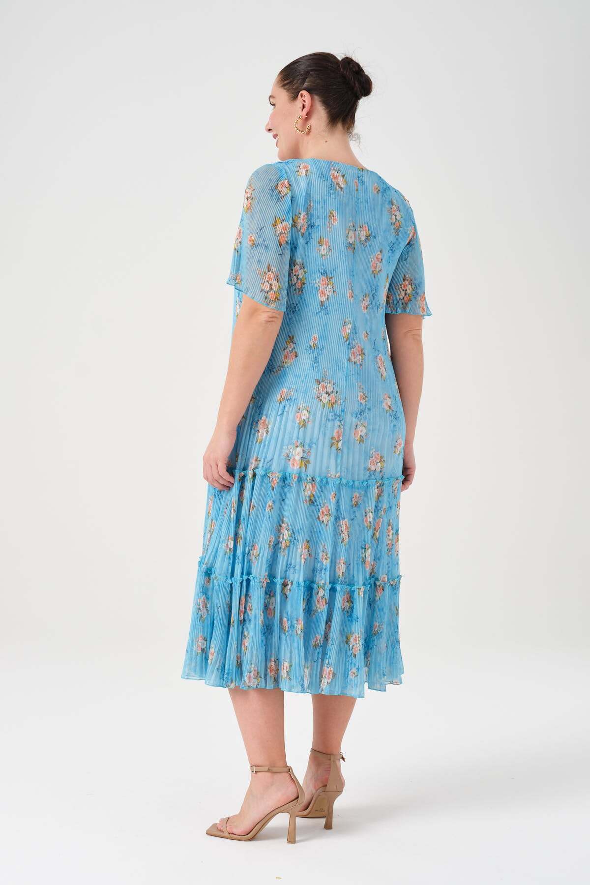 Çiçek Desenli Piliseli Şifon Elbise Mavi Çiçek Desenli Piliseli Şifon Elbise Mavi 9359879504178 52