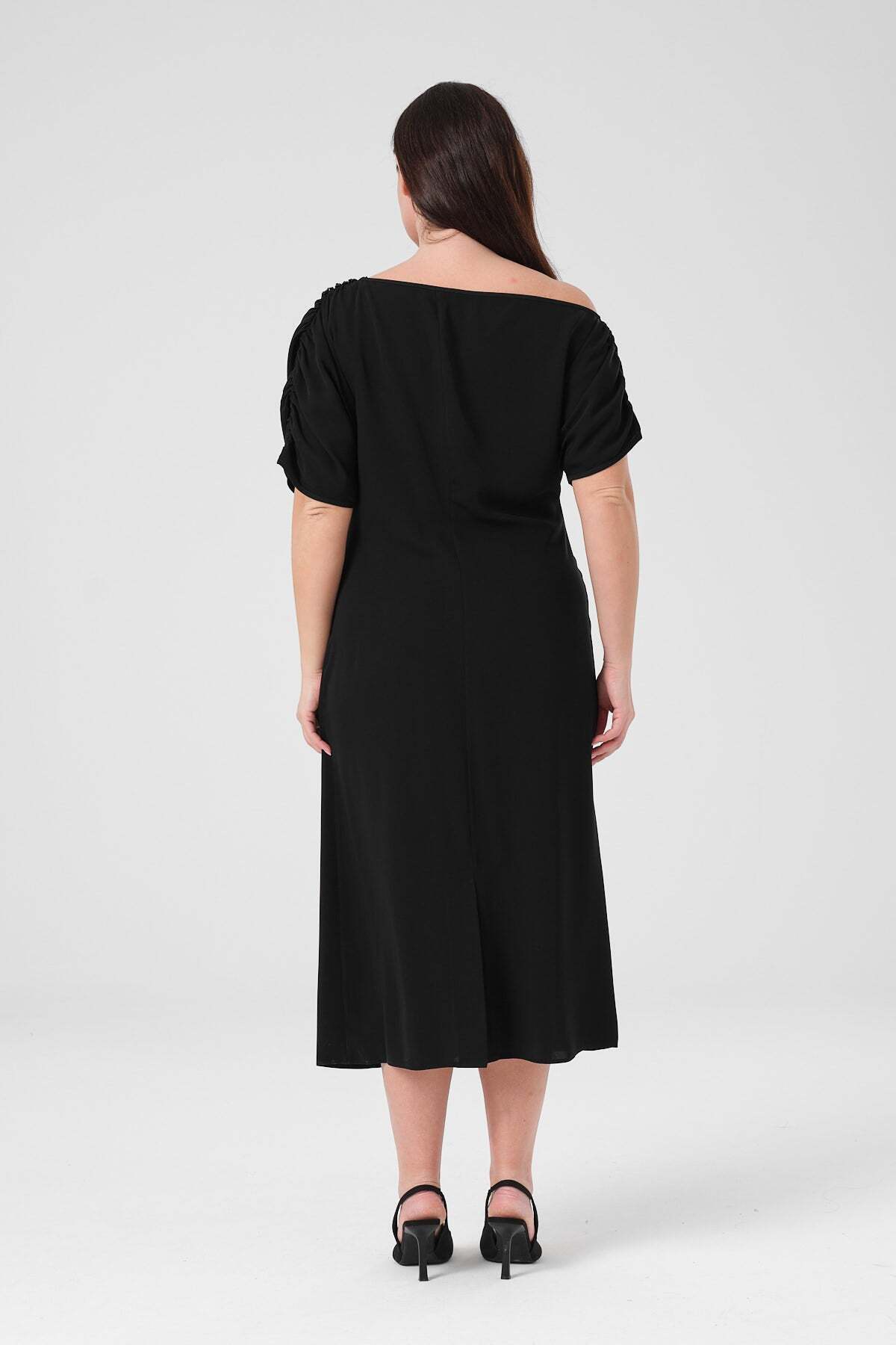Düşük Omuz Çiçek Aksesuarlı Elbise - Siyah Düşük Omuz Çiçek Aksesuarlı Elbise - Siyah 19431 48