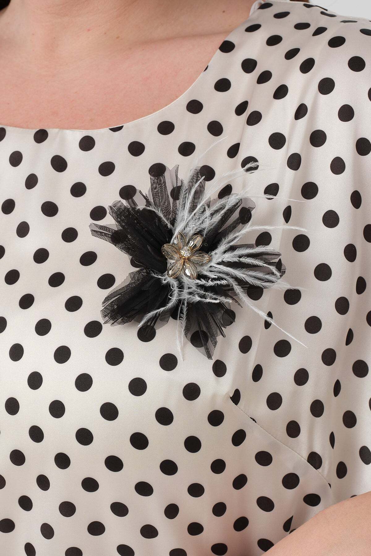 Puantiyeli Belden Kemerli Katlı Etek Ucu Elbise - Siyah Puantiyeli Belden Kemerli Katlı Etek Ucu Elbise - Siyah 19436 52