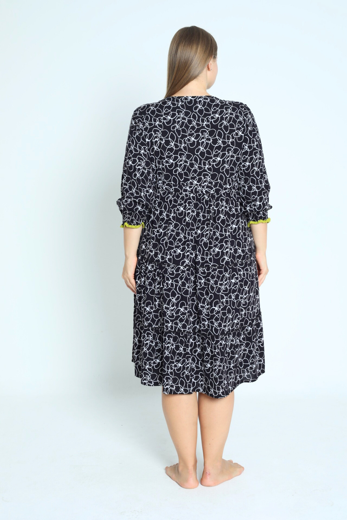 Kadın Büyük Beden Dokuma Viskon Kumaş Desenli Düğmeli Elbise 33487 Kadın Büyük Beden Dokuma Viskon Kumaş Desenli Düğmeli Elbise 33487 4XL