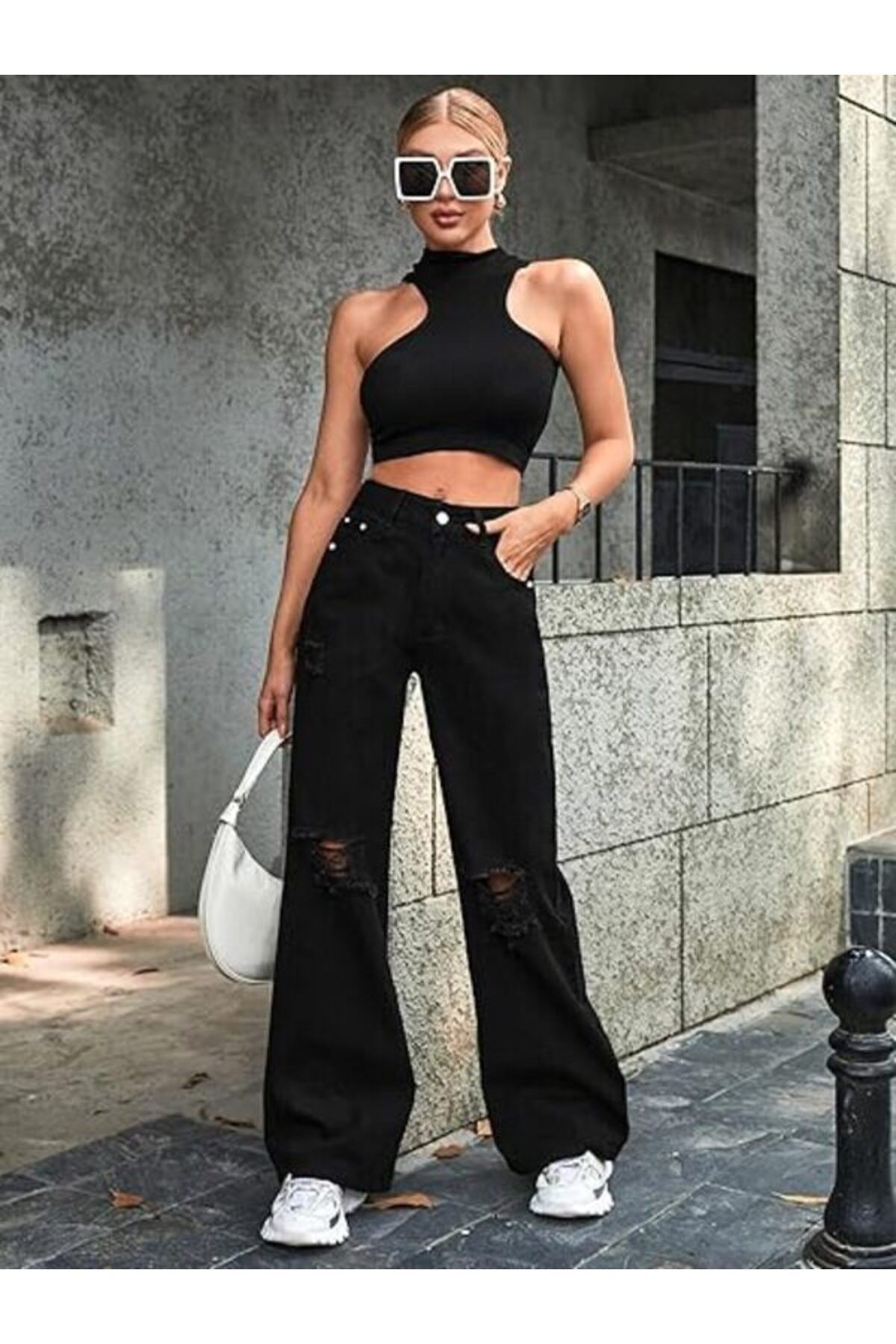 Whatsup Yüksek Bel Ispanyol Yırtık Detaylı Pantolon - Denim Whatsup Yüksek Bel Ispanyol Yırtık Detaylı Pantolon - Denim WHA-1150-24 30