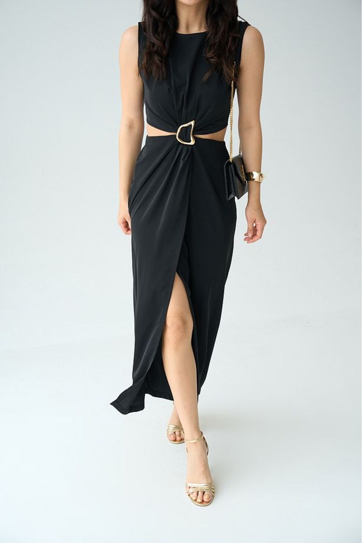 Siyah Önden Tokalı Yan Dekolteli Elbise - 8190 Siyah Önden Tokalı Yan Dekolteli Elbise - 8190 Flow - 8190 L