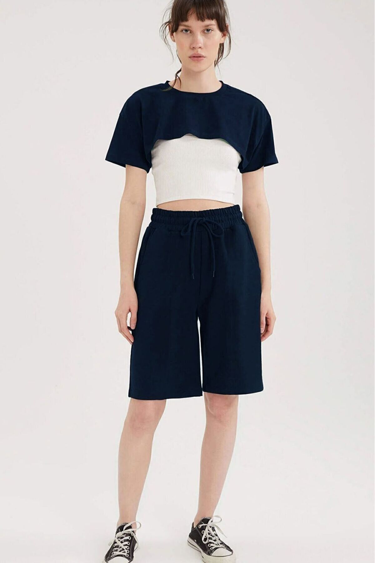 2' li Comfort Label Bağcıklı Oversize Uzun Kadın Bermuda Şort (Lacivert - Füme) 2' li Comfort Label Bağcıklı Oversize Uzun Kadın Bermuda Şort (Lacivert - Füme) OX1001 2XL