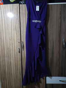 Kadın Scuba Krep Kumaş Kruvaze Yaka Eteği Volanlı Kemer Taşlı Mor Abiye Mezuniyet Nikah Elbise Kadın Scuba Krep Kumaş Kruvaze Yaka Eteği Volanlı Kemer Taşlı Mor Abiye Mezuniyet Nikah Elbise AMC-R1280T 4XL