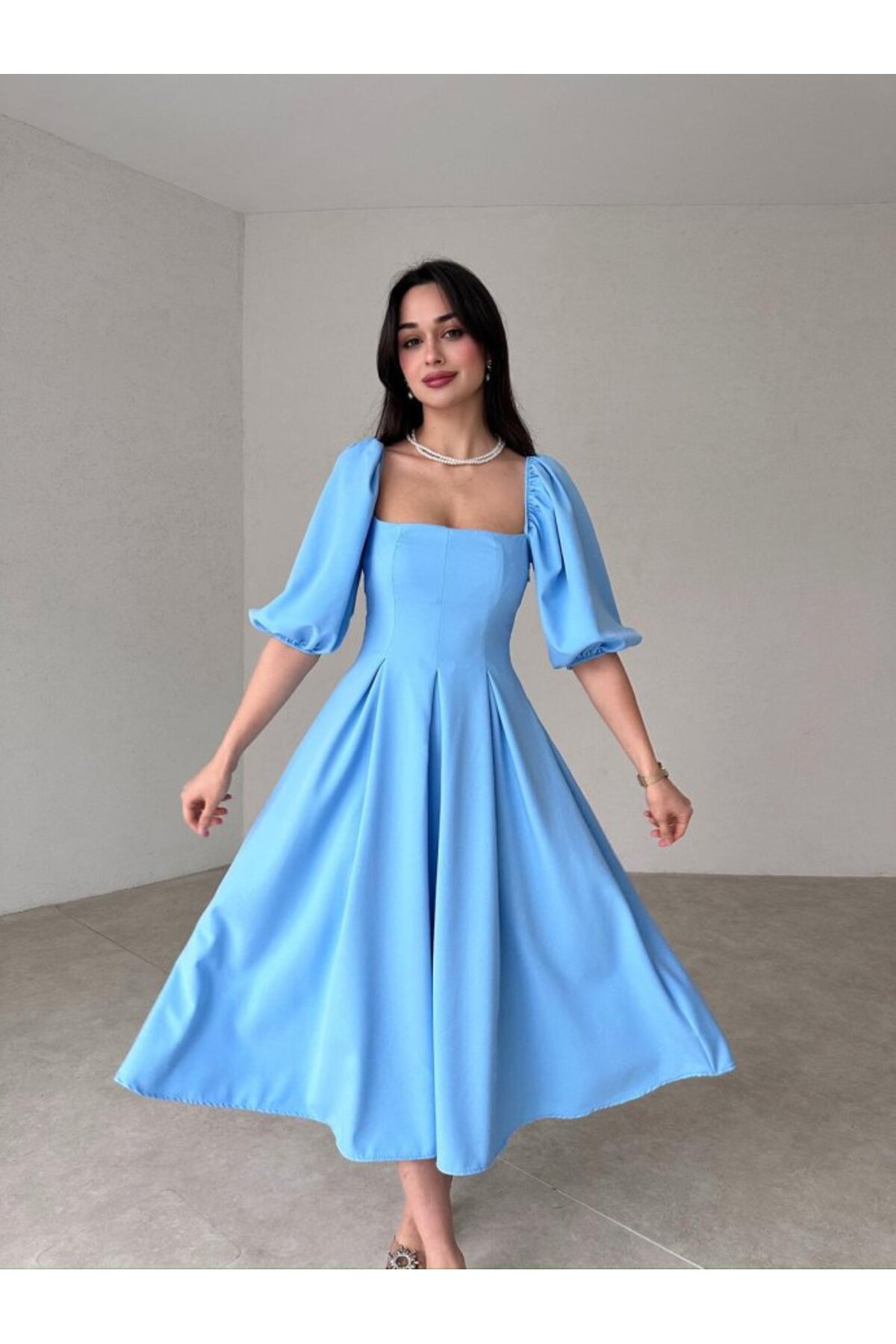 Kırmızı Kare Yaka Pileli Midi Boy Elbise Kırmızı Kare Yaka Pileli Midi Boy Elbise AFŞ-KRYAMB