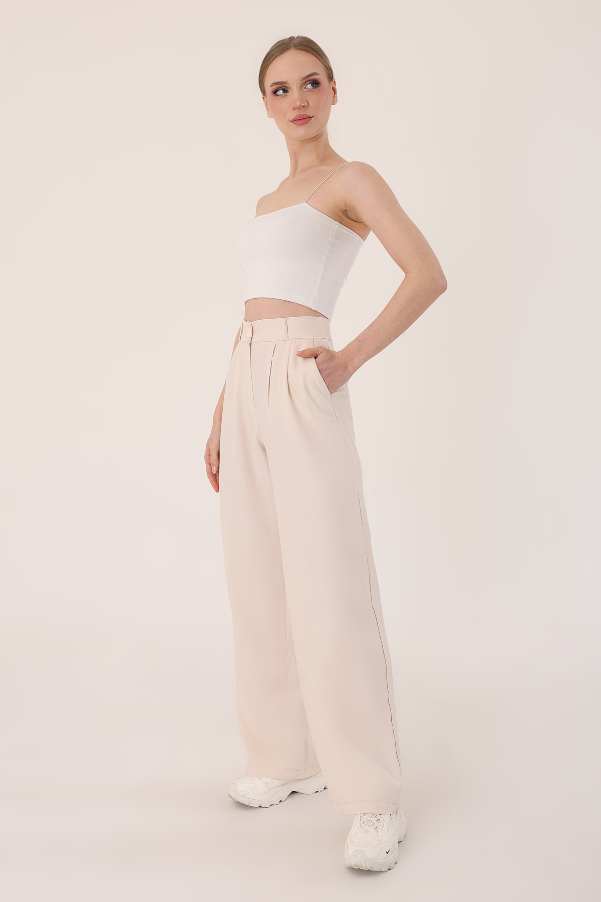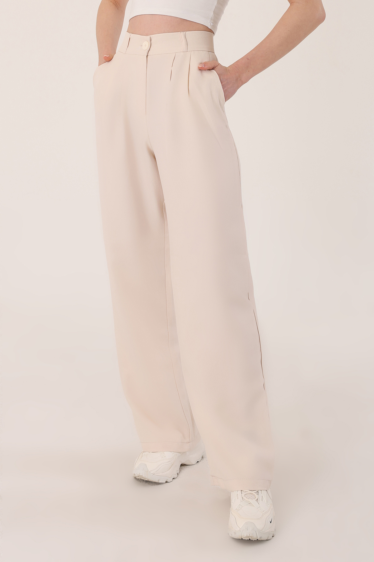 Kadın Taş Yüksek Bel Keten Palazzo Pantolon Kadın Taş Yüksek Bel Keten Palazzo Pantolon POL2301 50