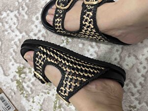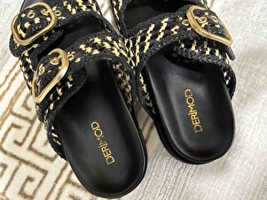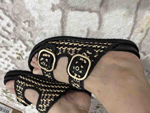 Kadın Siyah Çift Tokalı Hasır Deri Terlik 25SFD5506M7 Kadın Siyah Çift Tokalı Hasır Deri Terlik 25SFD5506M7 40
