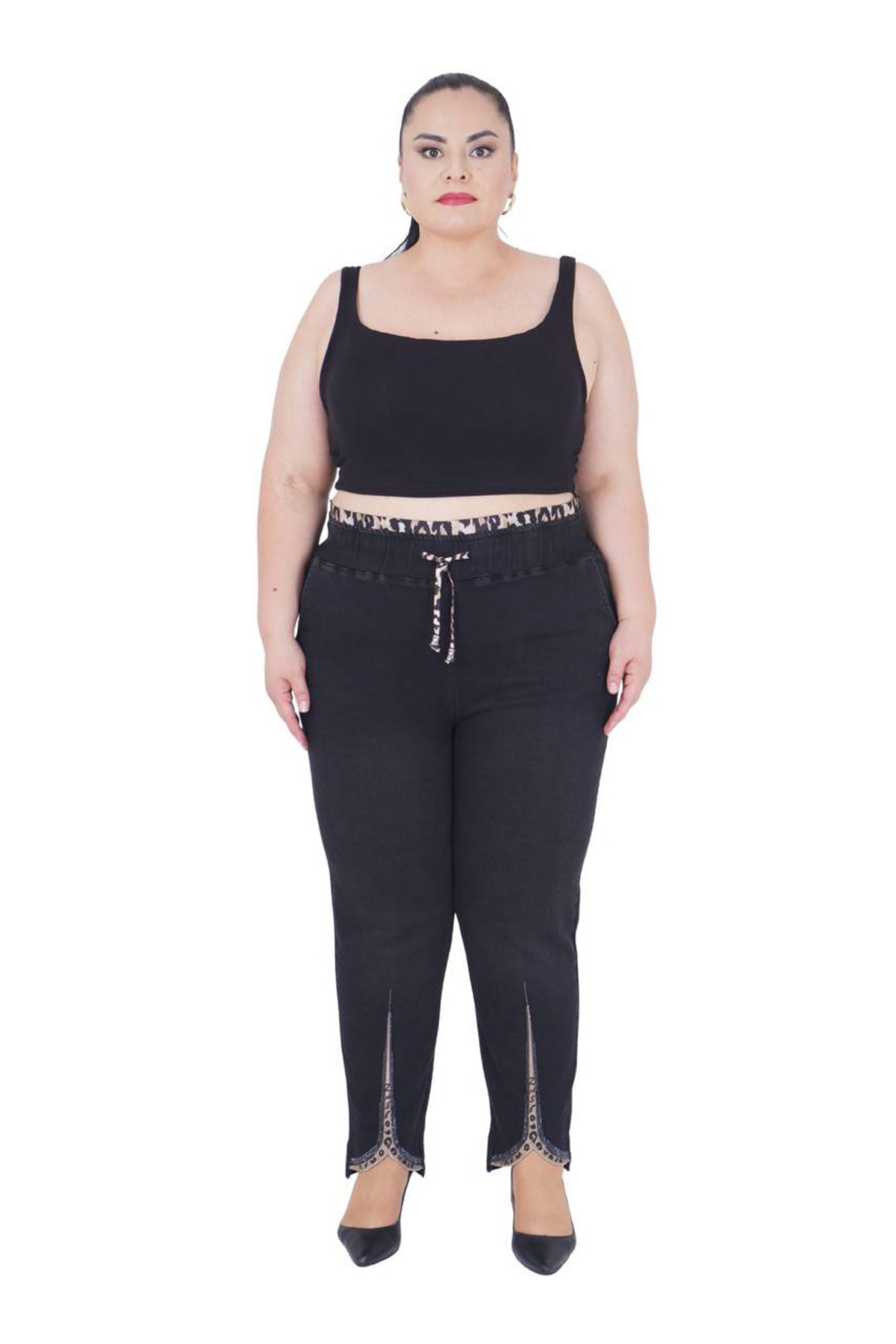 Duble Paça Likralı Pamuklu Büyük Beden Kadın Pantolon Duble Paça Likralı Pamuklu Büyük Beden Kadın Pantolon 8115-30 50