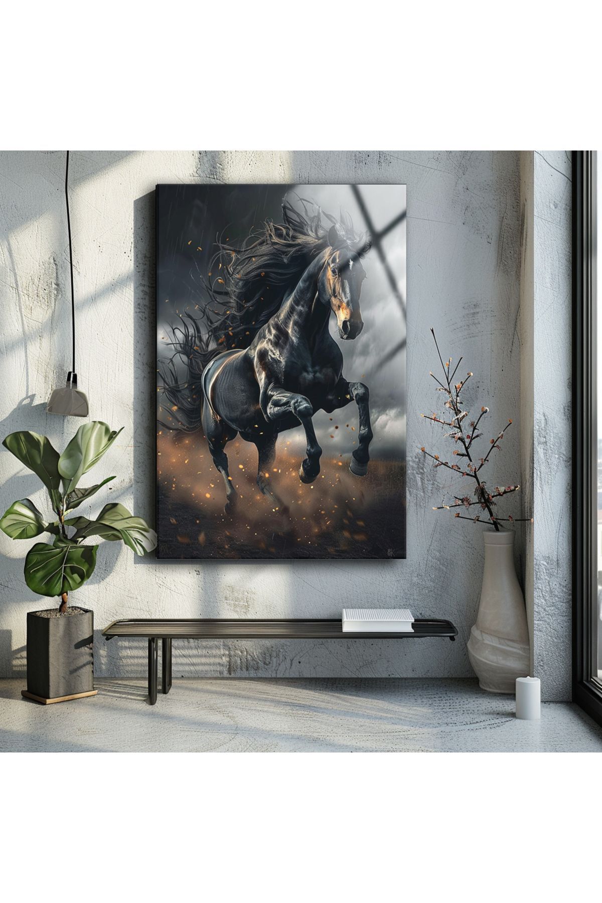 Siyah At Tablosu , Modern Duvar Dekoru , Temperli Cam Tablo , Cam Baskı , Duvar Tablosu Siyah At Tablosu , Modern Duvar Dekoru , Temperli Cam Tablo , Cam Baskı , Duvar Tablosu evlikaasvat4 105 x 70
