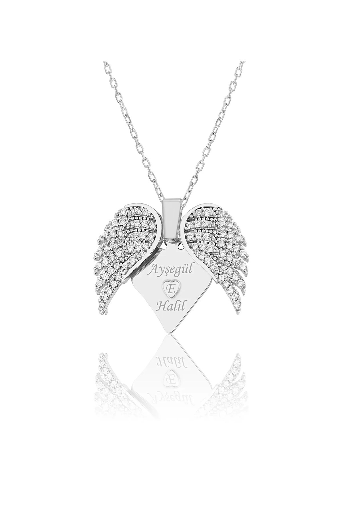 Kişiye Özel İsimli Melek Kanadı Açılan Çelik Kalp Kolye Kişiye Özel İsimli Melek Kanadı Açılan Çelik Kalp Kolye KKKSOZISMLKNACKP001 45 cm