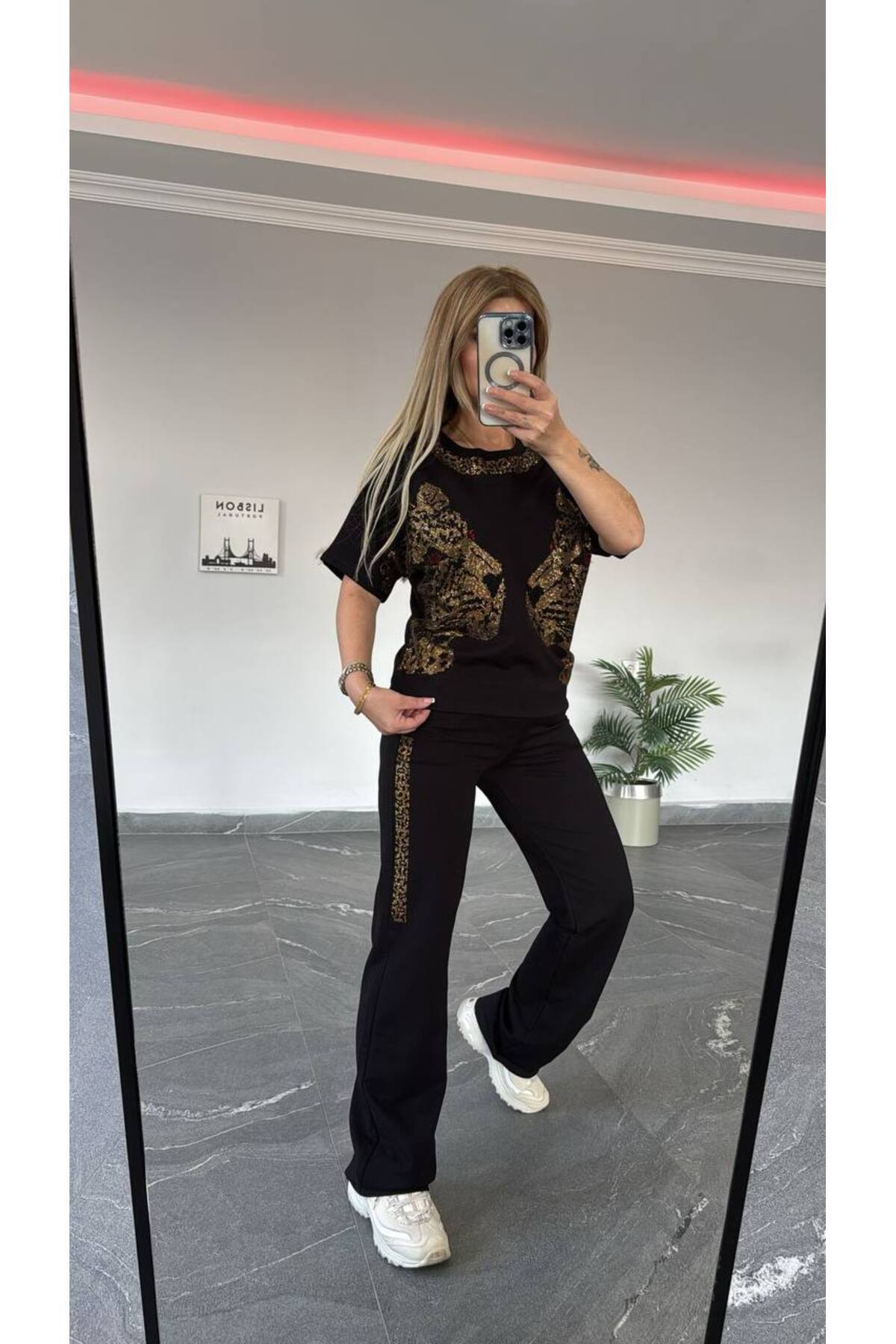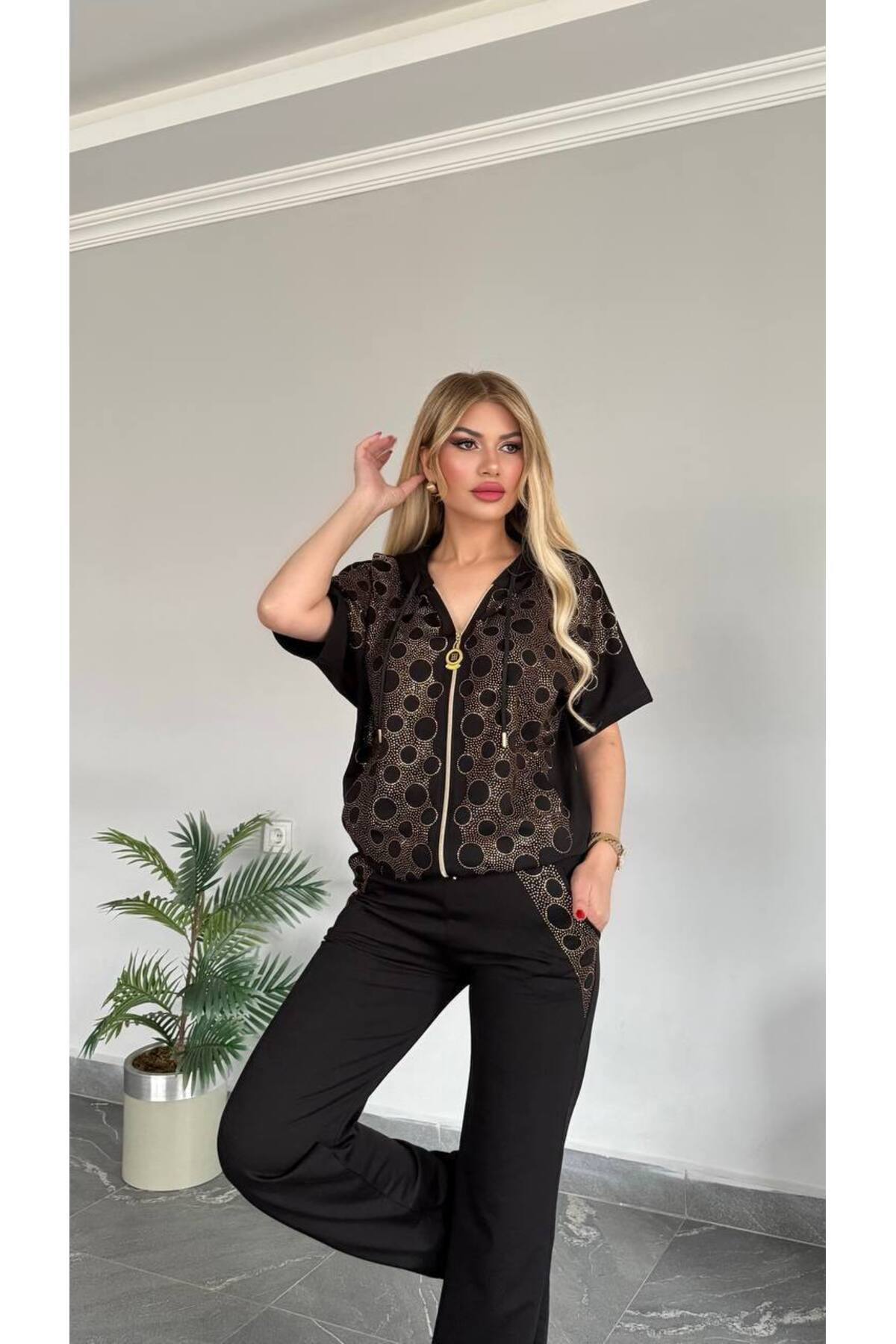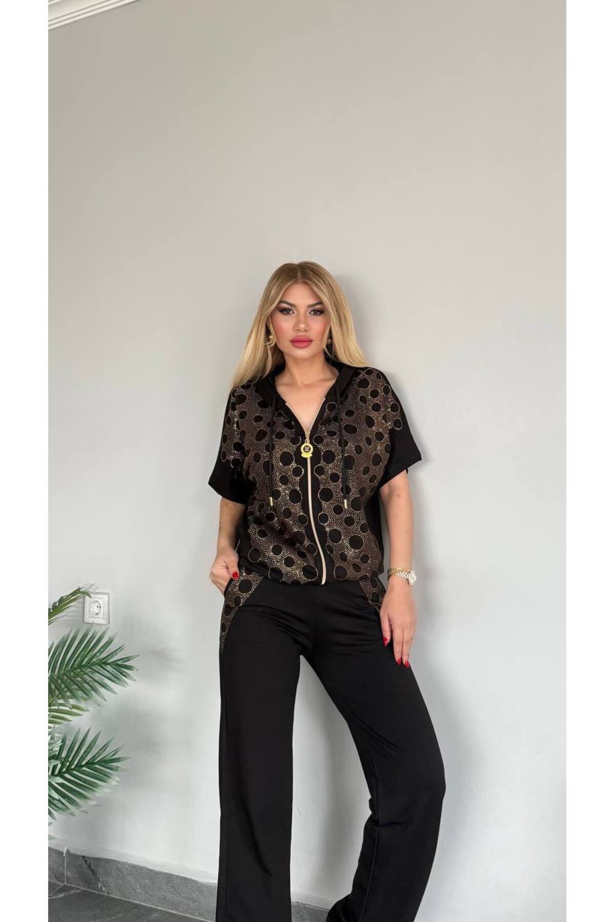Yeni Sezon Kapüşonlu Fermuarlı Taş Baskı Alt Üst Takım Yeni Sezon Kapüşonlu Fermuarlı Taş Baskı Alt Üst Takım RDWMN1822 XL