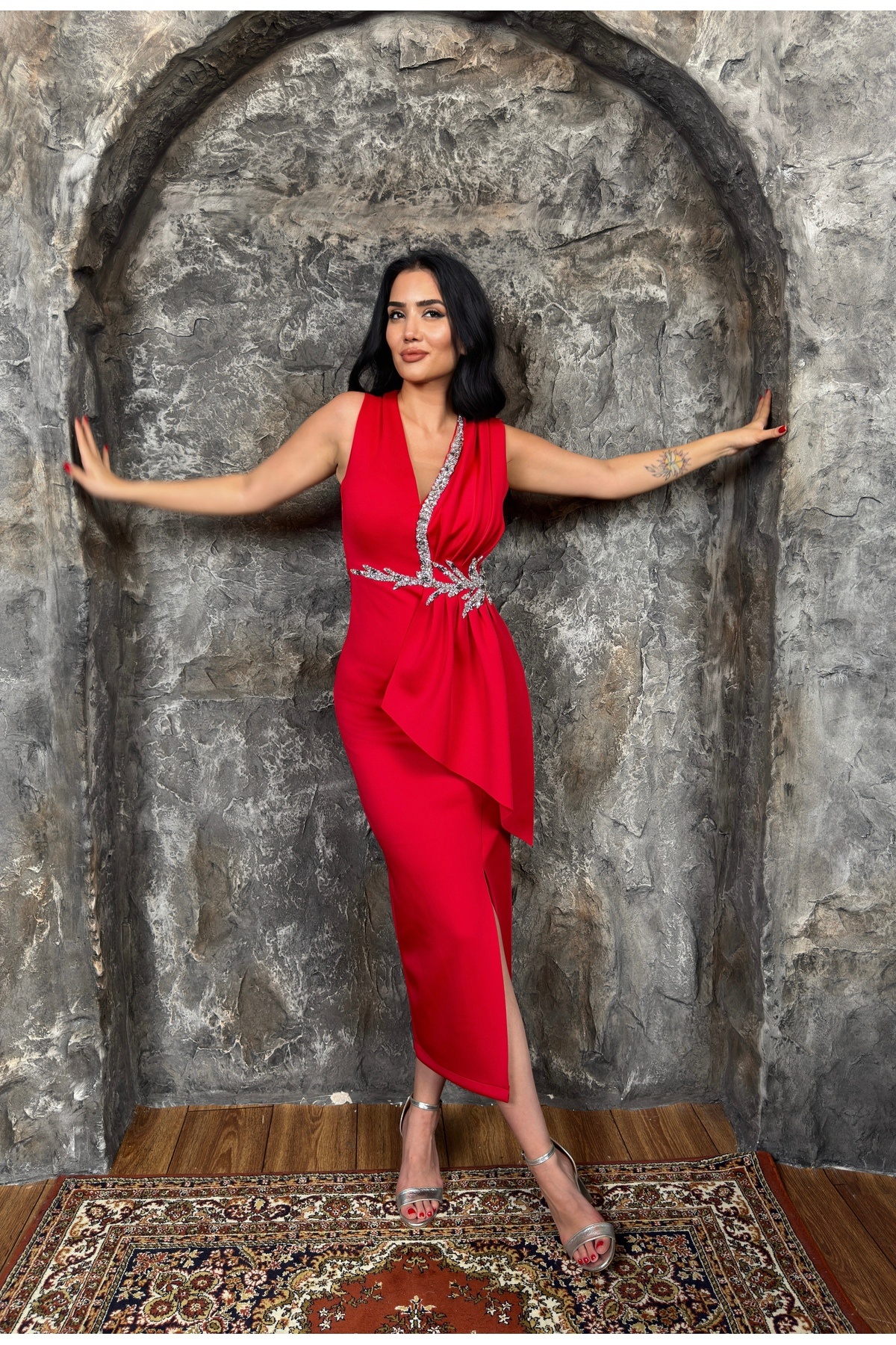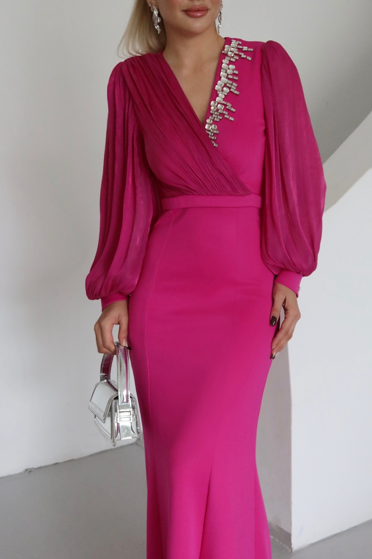 Kadın İthal Scuba Krep Kumaş Kollar Ve Göğüs Şifon Taş İşleme Astarlı Özel Tasarım Elbise Kadın İthal Scuba Krep Kumaş Kollar Ve Göğüs Şifon Taş İşleme Astarlı Özel Tasarım Elbise 2526ELBS 2XL