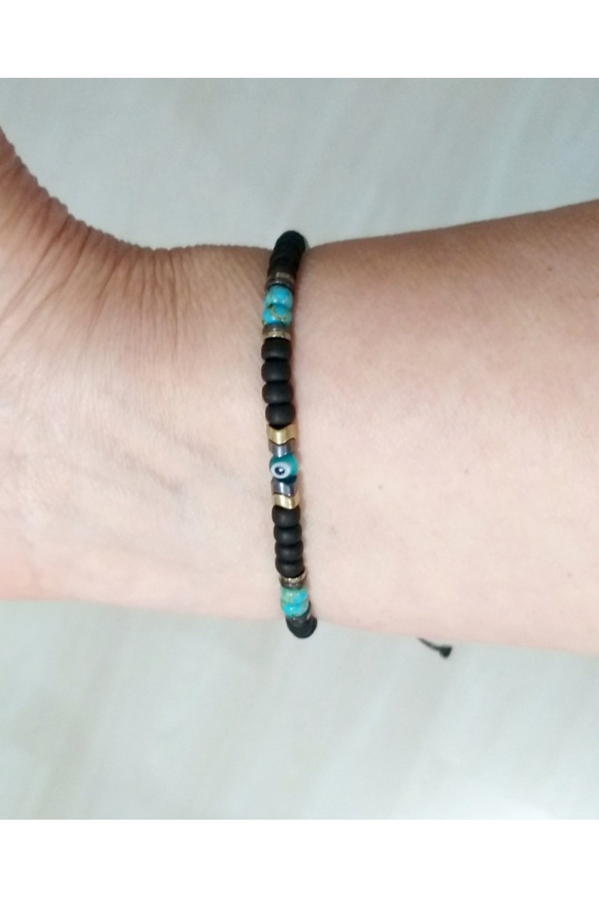 - Materyal Bileşeni : Hematit Doğaltaşlar, Miyuki Round Boncuklar (4 mm boyutunda), Cam Nazar Boncuğu (4 mm boyutunda)