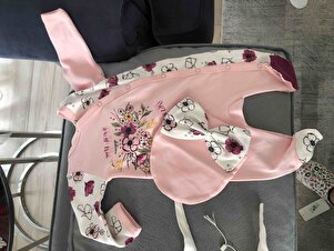 Çiçek Baskılı Şapkalı Bebek Tulumu Çiçek Baskılı Şapkalı Bebek Tulumu İB456985 6-9 AY