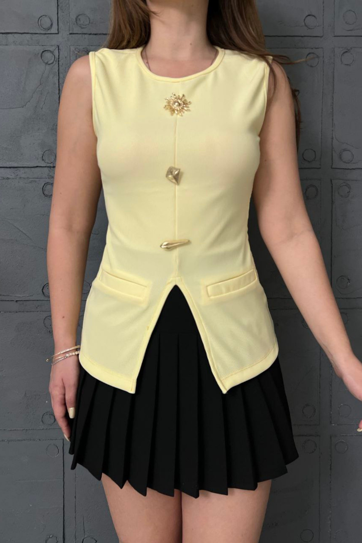 Aksesuar Detaylı Bluz Yelek Aksesuar Detaylı Bluz Yelek G1475 L