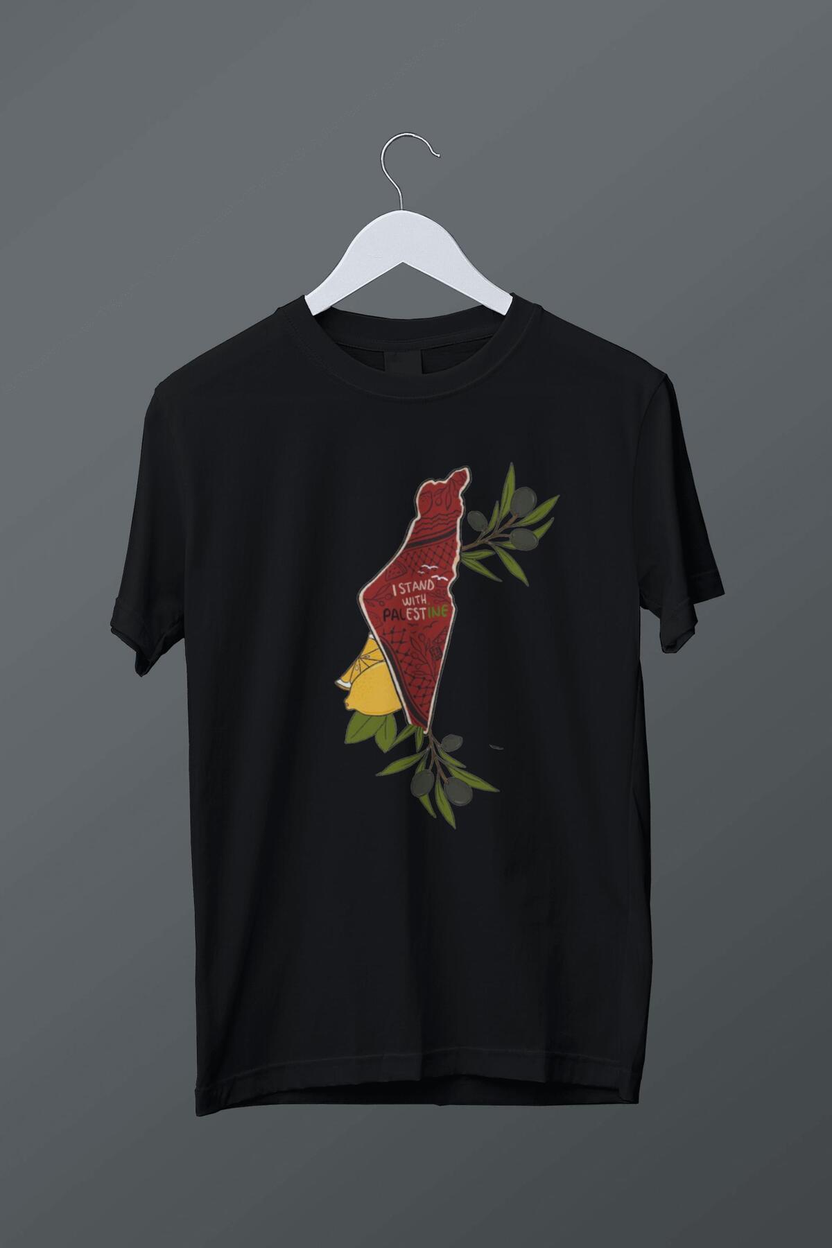 Kefiyeli İnci Küpeli Kız Baskılı Siyah Tişört Kefiyeli İnci Küpeli Kız Baskılı Siyah Tişört İnciKüpRe XL