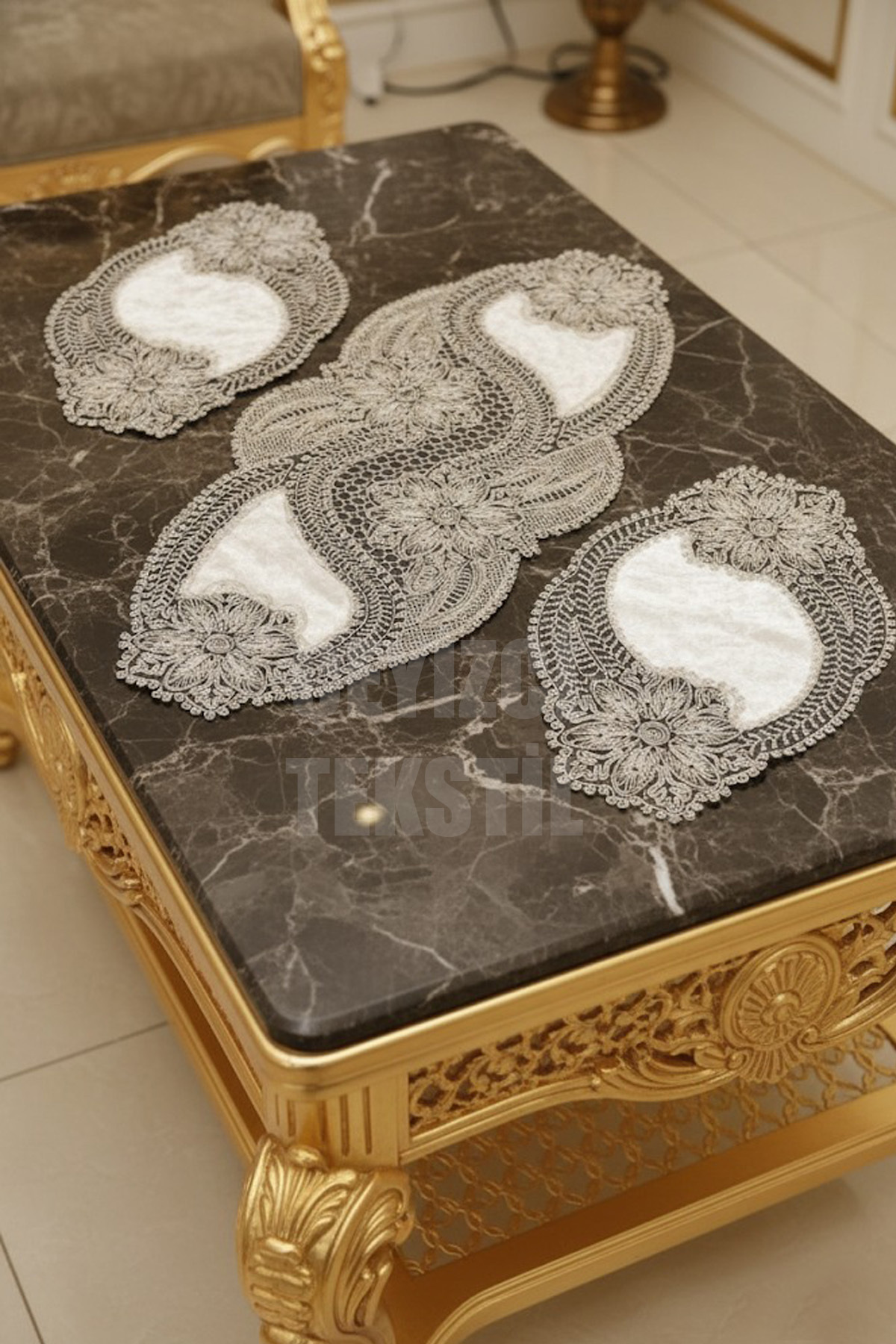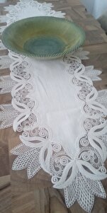 Fransız Dantelli Keten Gardeya Lüx Runner Fransız Dantelli Keten Gardeya Lüx Runner ZESA0154 140 x 40