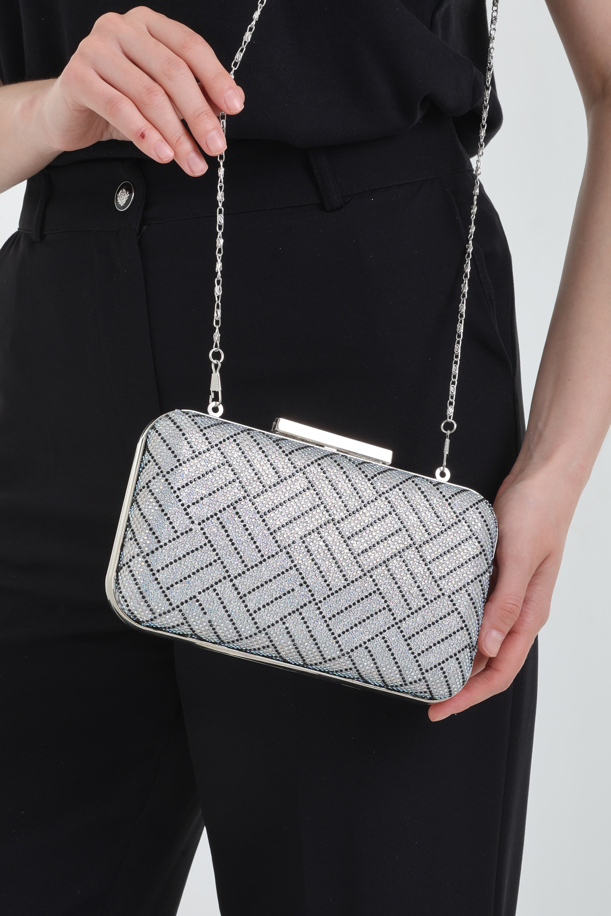 Oval Kenarlı Tek Taraflı Desenli Taşlı Abiye Çanta Oval Kenarlı Tek Taraflı Desenli Taşlı Abiye Çanta Desing تک سایز
