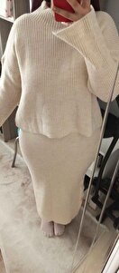 Kolları Yırtmaç Detaylı Şardonlu Oversize Triko Kazak Maxi Etek Takım Kolları Yırtmaç Detaylı Şardonlu Oversize Triko Kazak Maxi Etek Takım TR1004 4XL