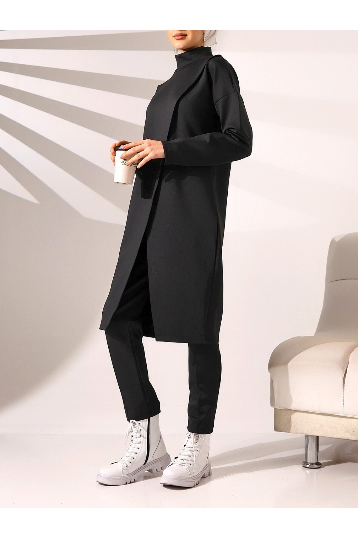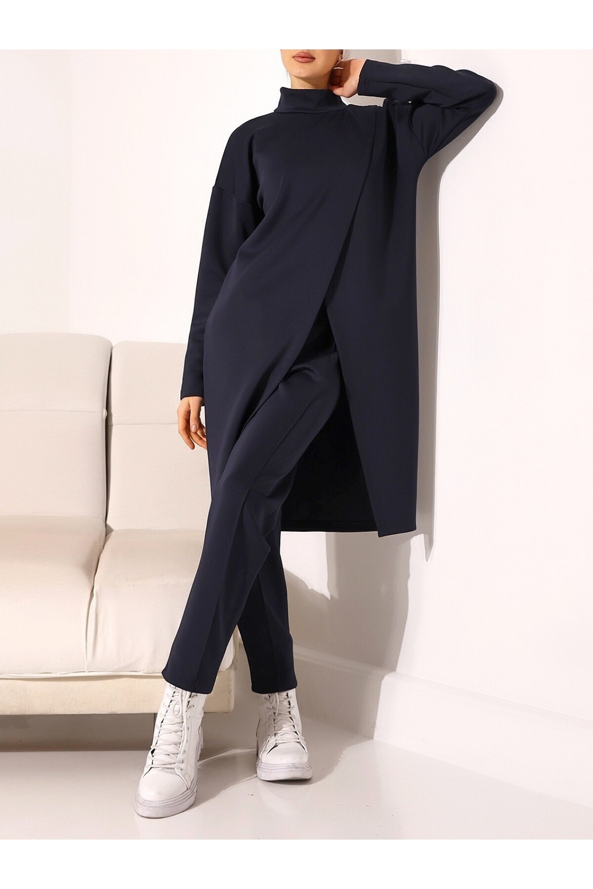 Dik Yaka Önü Çift Kat Tunik Pantolon Scuba Takım Dik Yaka Önü Çift Kat Tunik Pantolon Scuba Takım HJB545678922 42