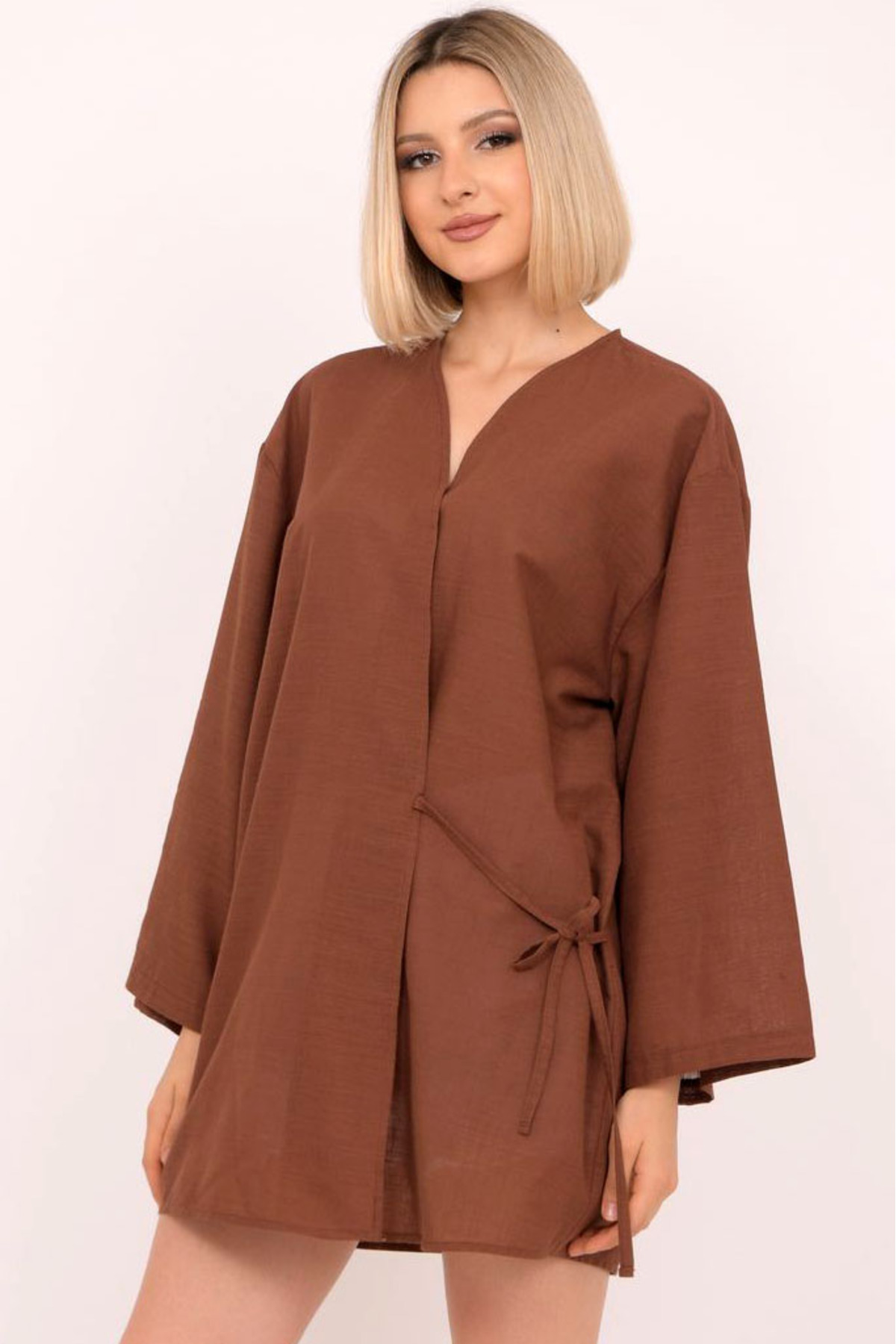 Yandan Bağlamalı Keten Kimono -Tarçın Yandan Bağlamalı Keten Kimono -Tarçın TY349-6017 L/XL