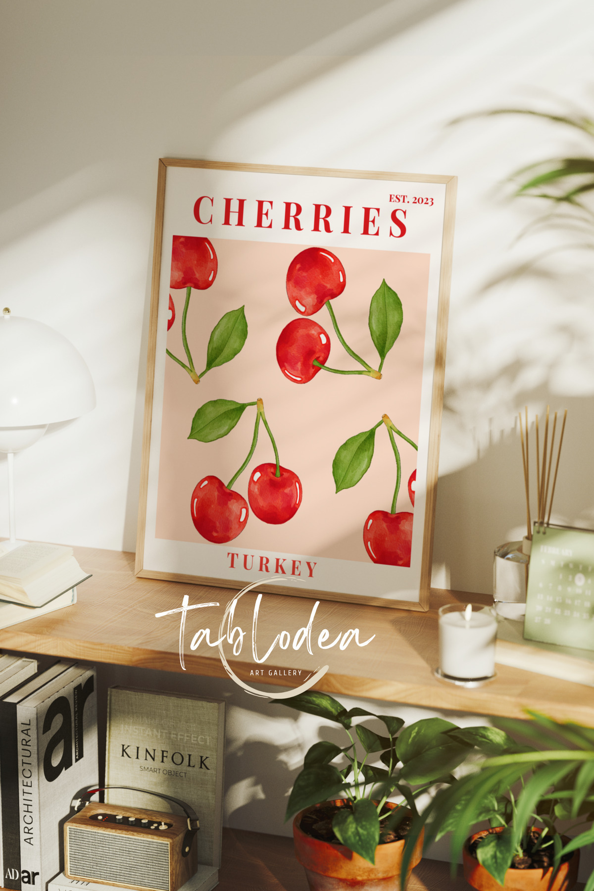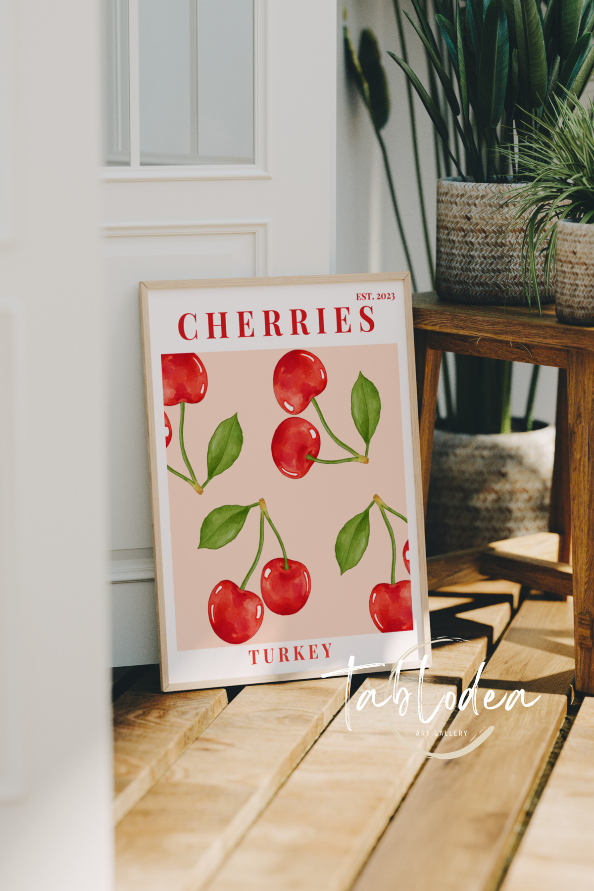 Kiraz Desenli Modern Mutfak Dekoru Çerçeveli Poster Tablo, Minimalist Dekoratif Bohem Mutfak Tablosu Kiraz Desenli Modern Mutfak Dekoru Çerçeveli Poster Tablo, Minimalist Dekoratif Bohem Mutfak Tablosu TDKIRAZTRKY-123 30 x 42