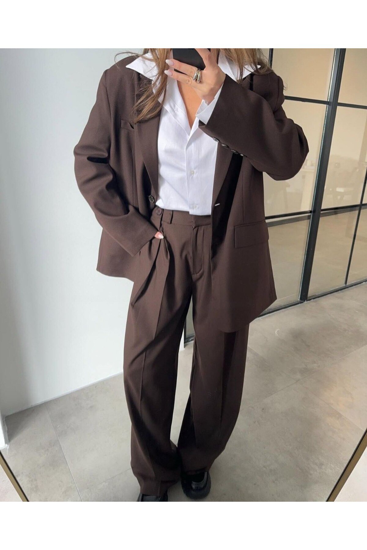 Kahverengi Pileli Palazzo Pantolon Kahverengi Pileli Palazzo Pantolon P-mry014 L