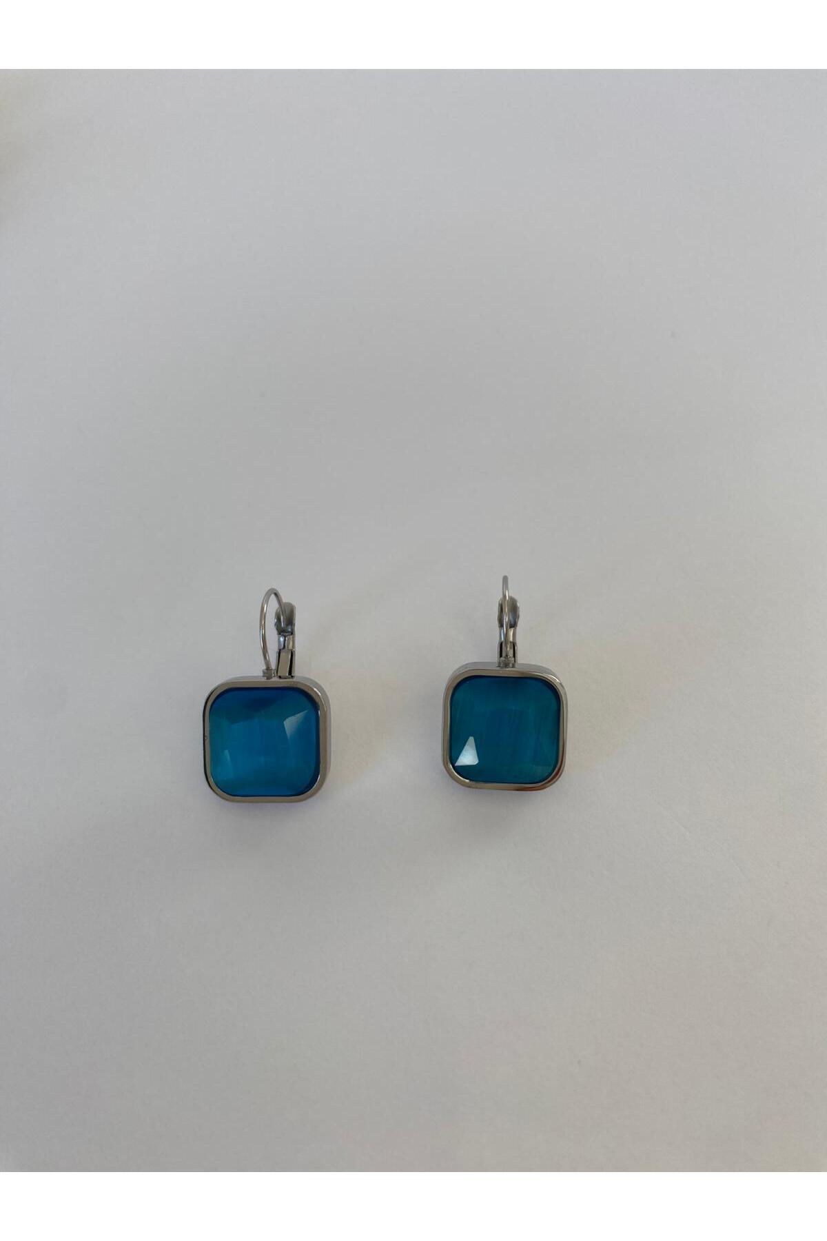Çelik Kare Mavi Taşlı Silver Küpe Çelik Kare Mavi Taşlı Silver Küpe KPS214 تک سایز