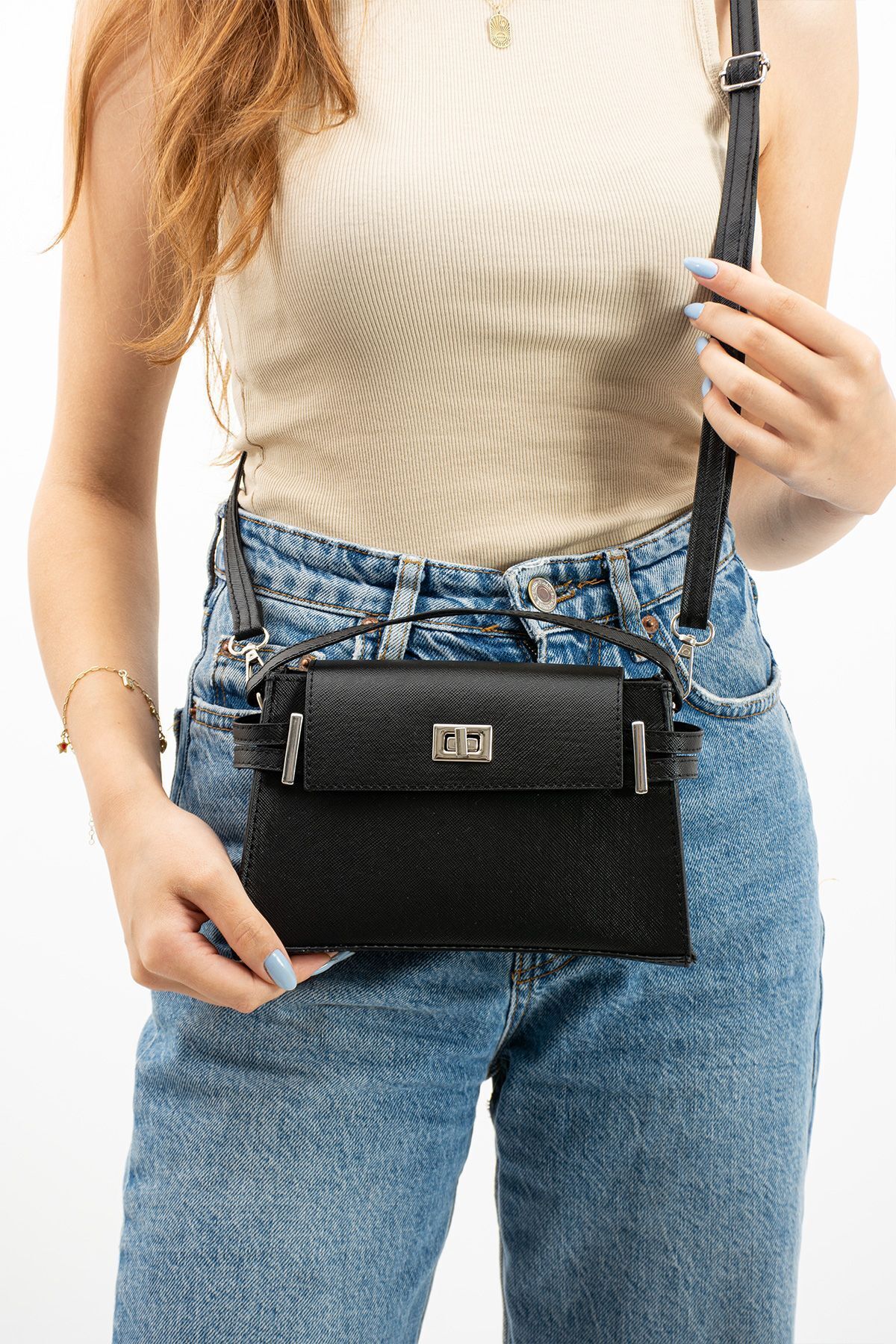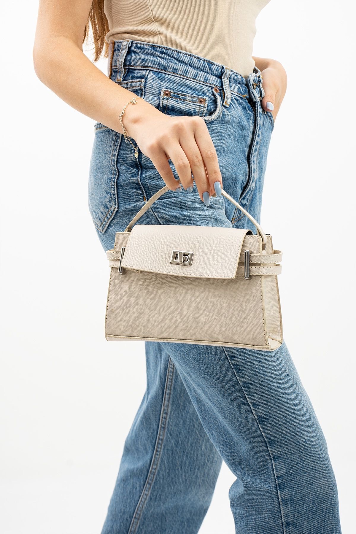 Kilit Kapaklı Kol Çantası Kilit Kapaklı Kol Çantası C000390 تک سایز