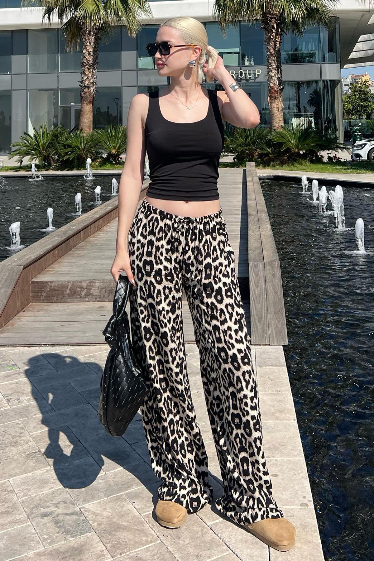 Kadın Leopar Desenli Günlük Rahat Beli Lastikli Pantolon Kadın Leopar Desenli Günlük Rahat Beli Lastikli Pantolon LEPPANT 42