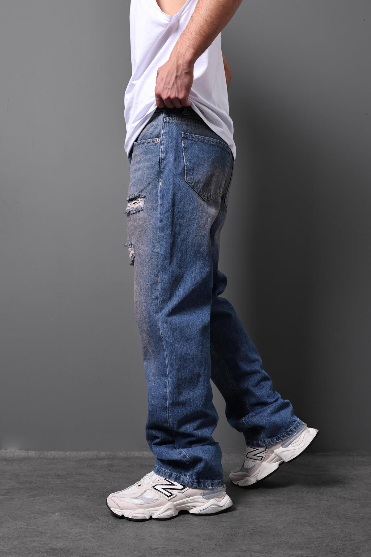 Erkek Mavi Taşlı Efektli Yırtık Detay Baggy Pantolon Erkek Mavi Taşlı Efektli Yırtık Detay Baggy Pantolon S6062 36