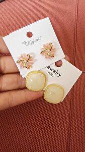 Krem Alacalı Taşlı Kare Küpe Krem Alacalı Taşlı Kare Küpe 25D214 تک سایز