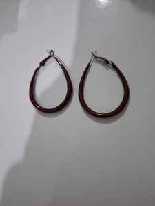 Bordo Oval Geniş Halka Küpe Bordo Oval Geniş Halka Küpe 25C016 تک سایز