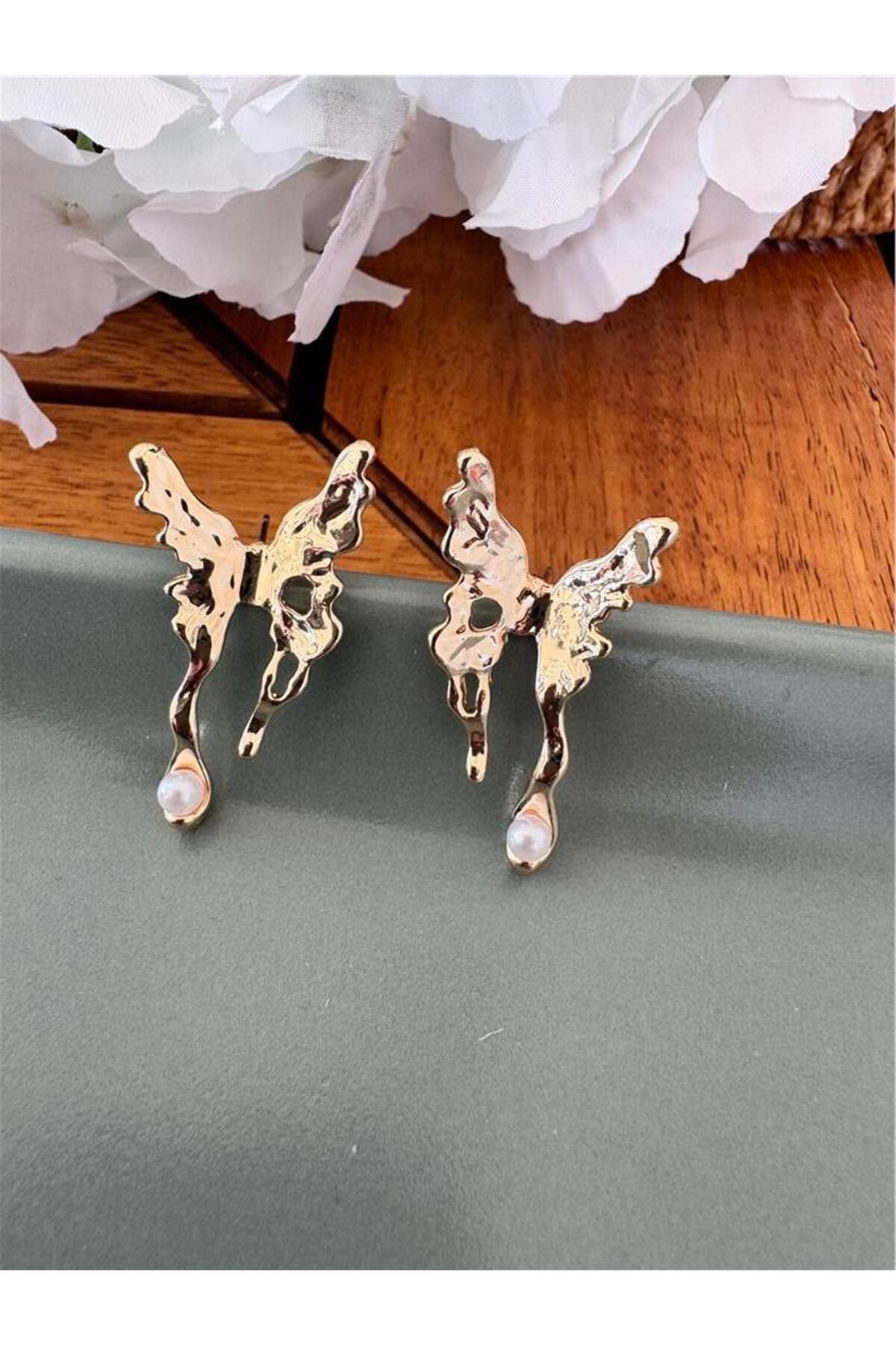 Gold Kelebek İnci Damlalı Küpe Gold Kelebek İnci Damlalı Küpe 7E036B تک سایز