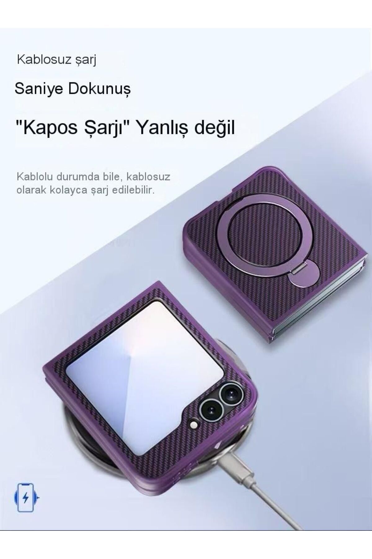 Samsung Z flip 6 uyumlu karbo stantlı telefon koruyucu kılıf Samsung Z flip 6 uyumlu karbo stantlı telefon koruyucu kılıf KLSZFLIP6KSS تک سایز