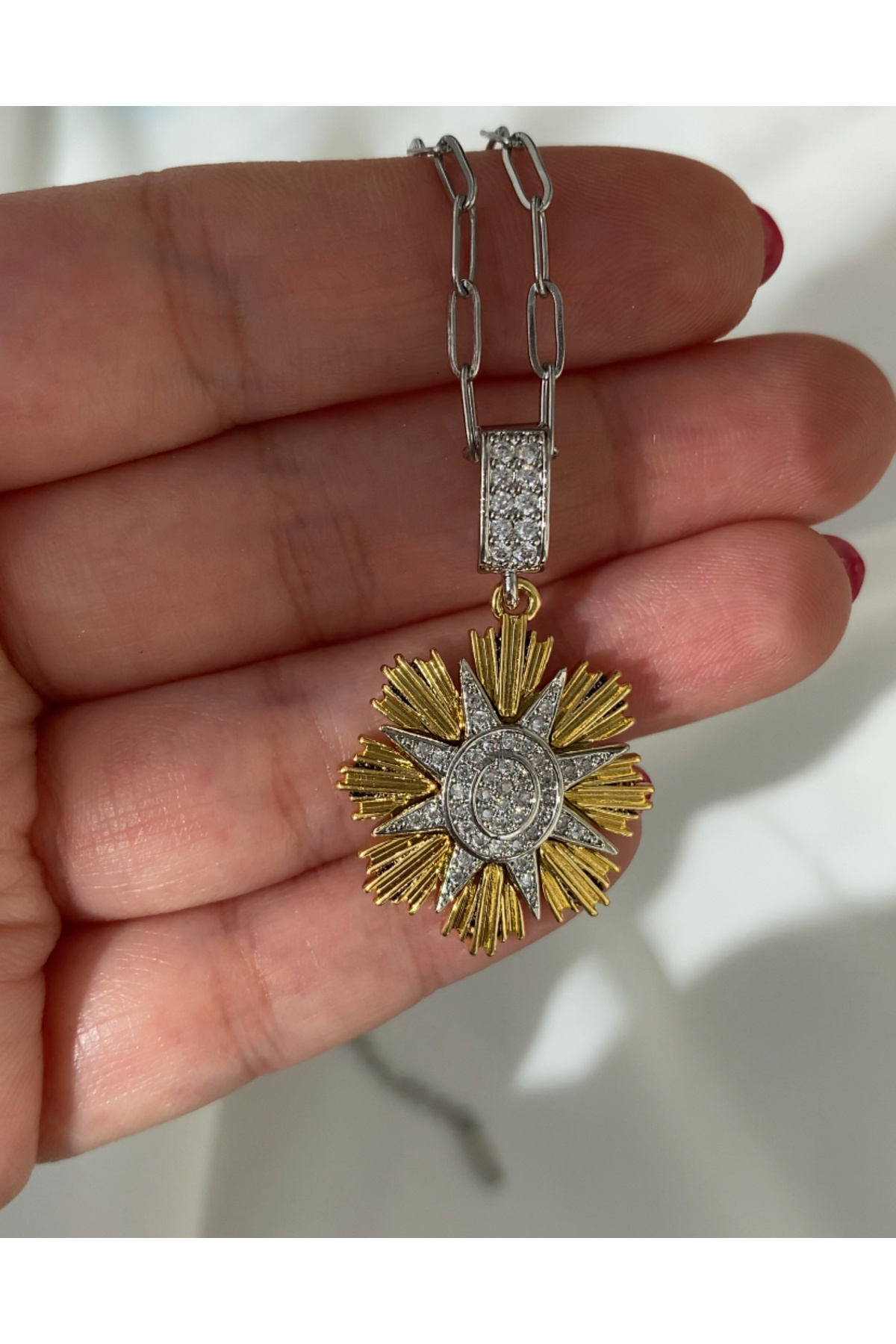 Yeşil Taşlı Güneş Kolye Yeşil Taşlı Güneş Kolye P14700S7397 تک سایز
