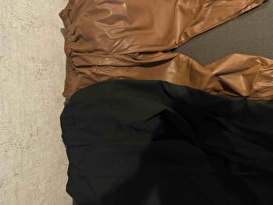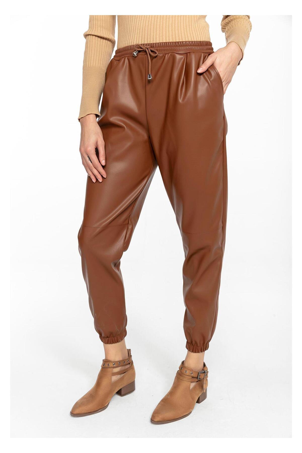 Pileli Lastikli Deri Pantolon Pileli Lastikli Deri Pantolon A0220K861T XL