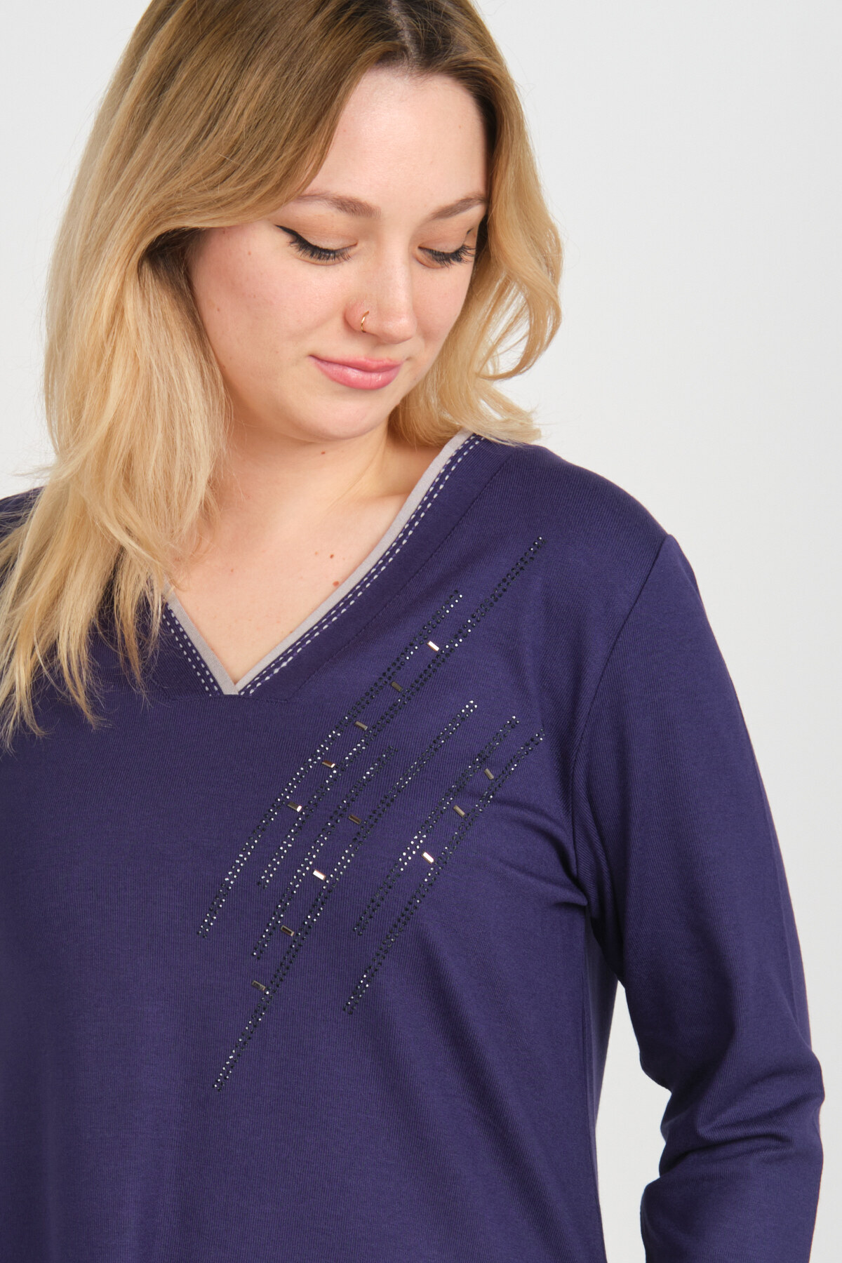 Kadın V Yaka Taş İşlemeli Uzun Kol Anne Bluz 5751 Mor Kadın V Yaka Taş İşlemeli Uzun Kol Anne Bluz 5751 Mor 804432025751 XL