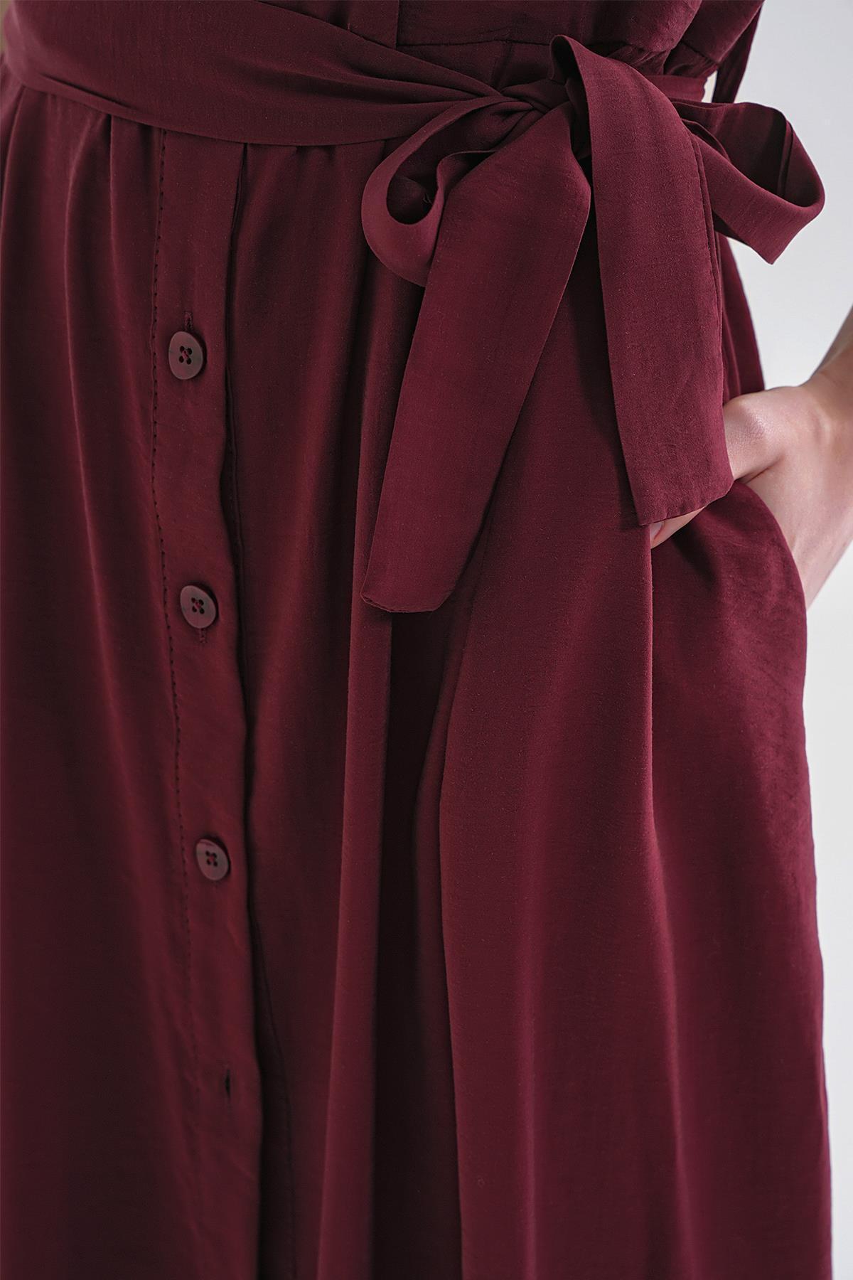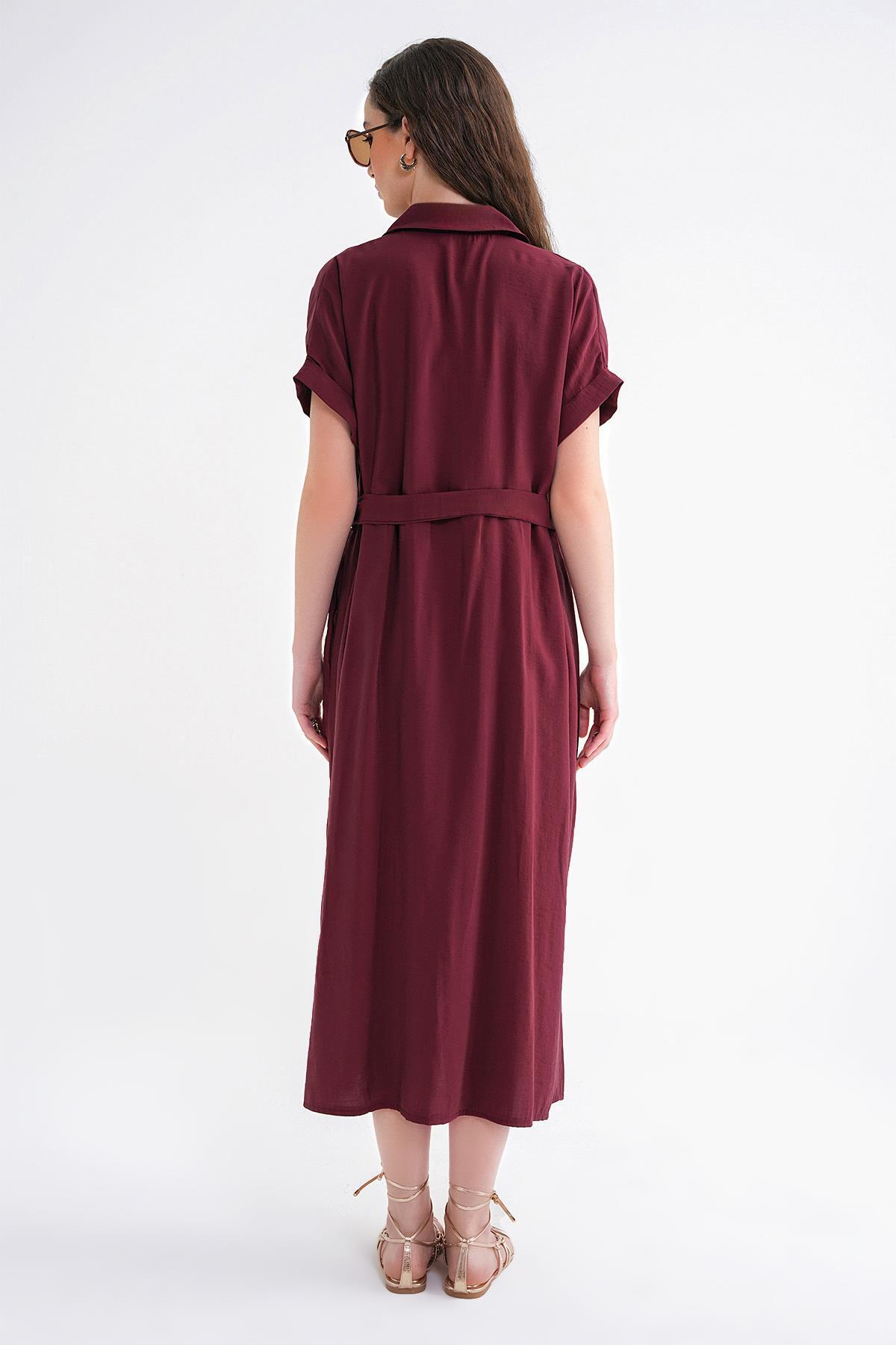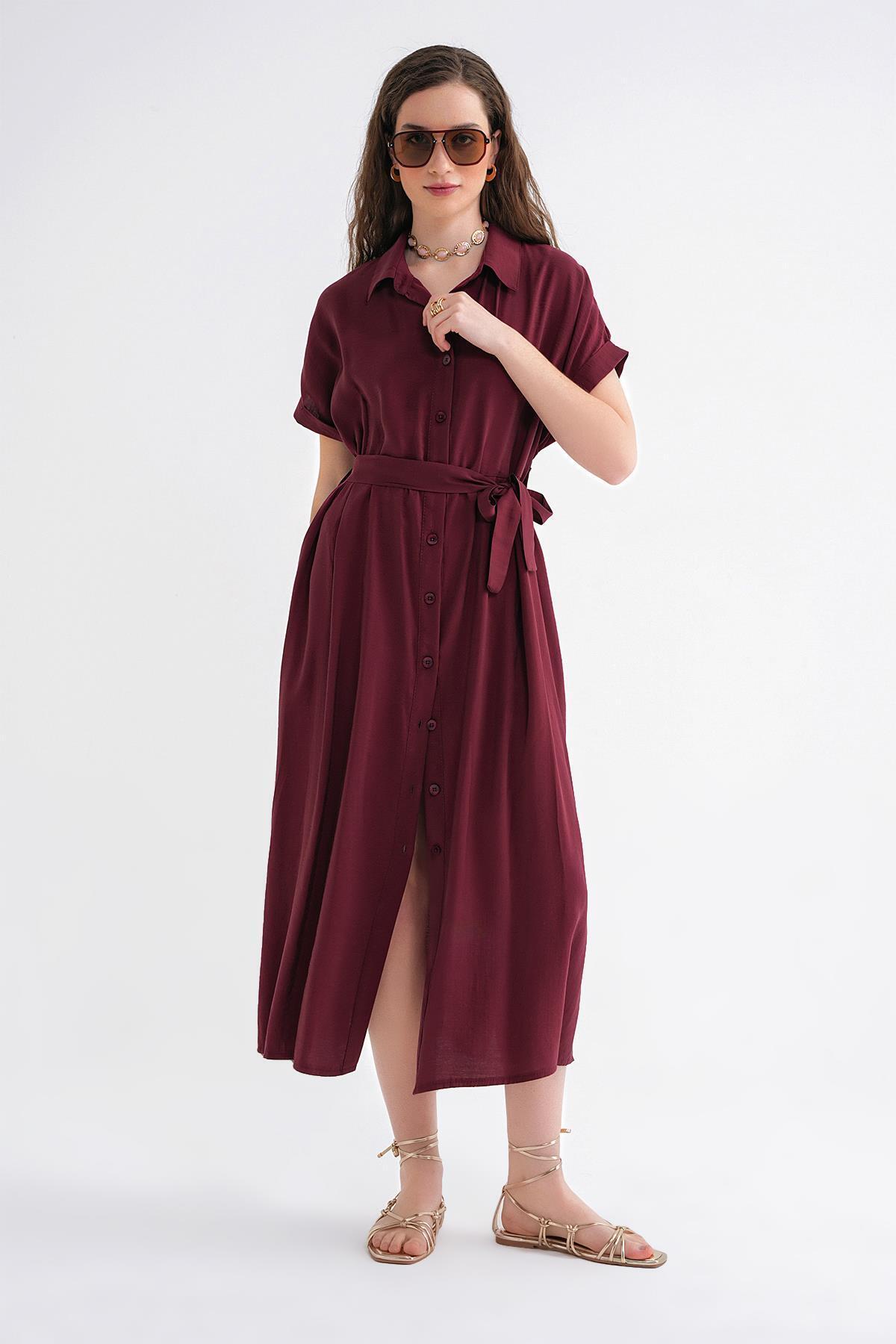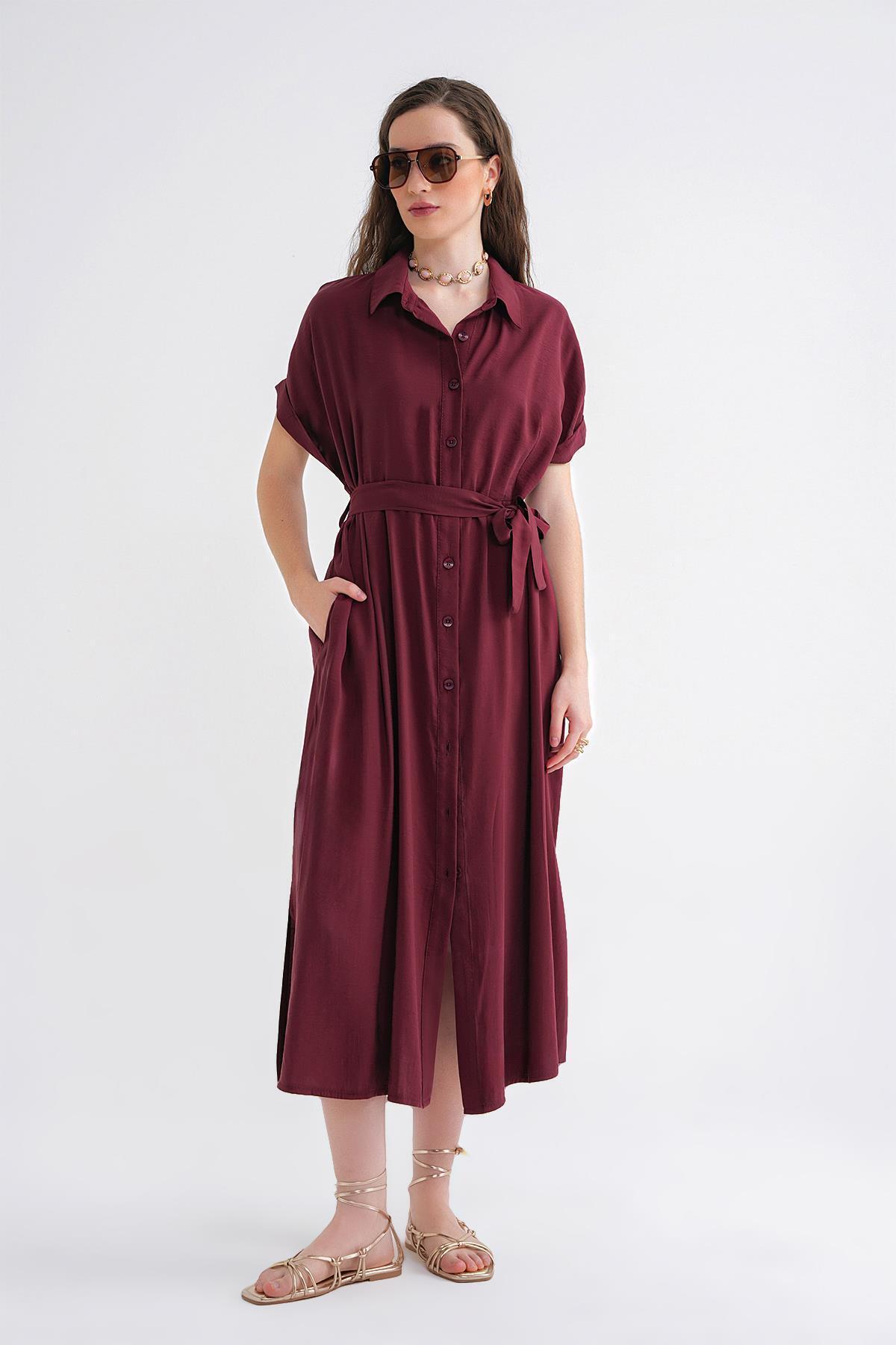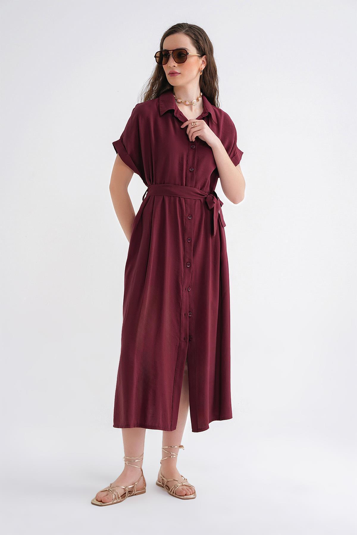 4699 Kadın Düşük Kol Düğmeli Kuşaklı Elbise Bordo 4699 Kadın Düşük Kol Düğmeli Kuşaklı Elbise Bordo Y25ELB4699 L