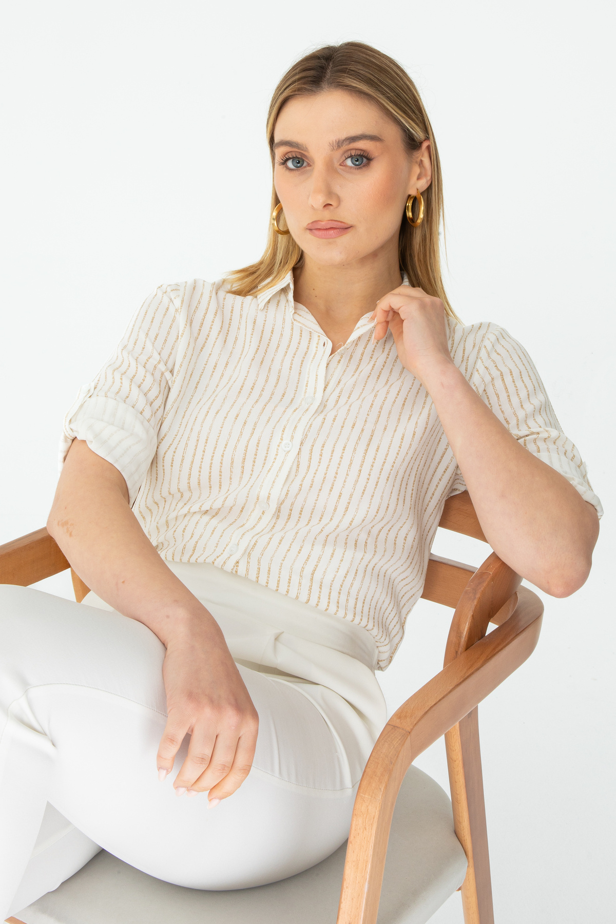 Kadın Yarasa Kol Tarçın Kahvesi Desenli Viskon Gömlek Kadın Yarasa Kol Tarçın Kahvesi Desenli Viskon Gömlek 1500091 XL